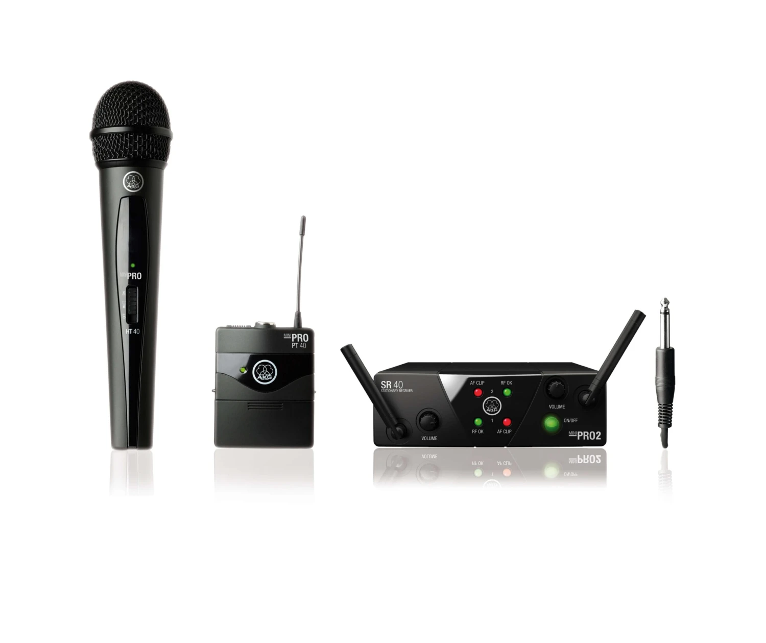 The WMS40 Mini Dual Vocal/Instrumental Set is a true plug’n’play wireless solution. The included PT40 Mini body-pack transmitter provides a professional 3pin mini XLR connector, compatible with guitar and bass levels, headsets and instrumental mics. The included HT40 Mini handheld transmitter features a dynamic cardioid capsule for maximum gain before feedback. Their extremely long battery life of 30 hours off a single AA battery saves money in day-to-day use. The receiver offers two balanced outputs via 1/4″ jack connectors.