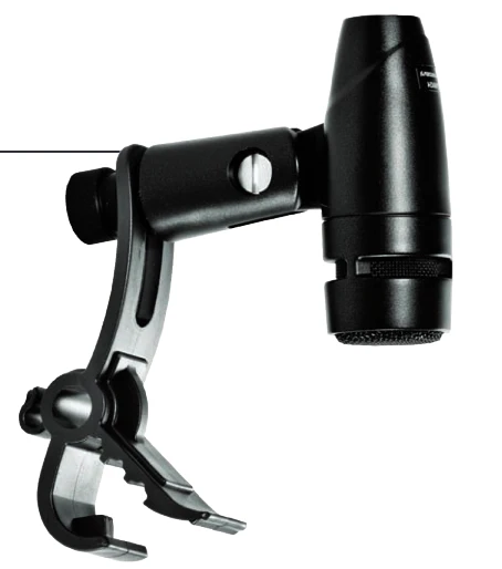 The Apex326 comes equipped with a rubber shock-absorbing mounting clip designed not to shift position or to damage a drum’s chrome or brass rim.