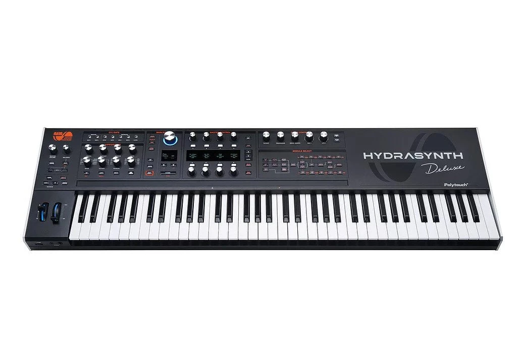 The HYDRASYNTH DELUXE is the flagship Hydrasynth, offering a dual sound engine setup and the largest ASM PolyTouch® polyphonic aftertouch keybed to date. The user interface is designed with the utmost attention to detail and offers a rapid workflow Each of the two sound engines features 3 Oscillators, dual Wave Mutators and 2 filters, that can be configured in series or parallel. Both of the sound engines has its own separate balanced analog audio outputs. The tone generating capabilities are simply unmatched. As for the performance capabilities, The HYDRASYNTH DELUXE has our proprietary 73-note Polytouch™ keybed that offers polyphonic aftertouch over each note, giving you the type of expressive control found only in certain vintage synths. Add to this a 4 octave ribbon controller and ergonomically designed pitch and mod wheels and you have expression and control that is not equaled in any other hardware synthesizer on the market… Today or ever.