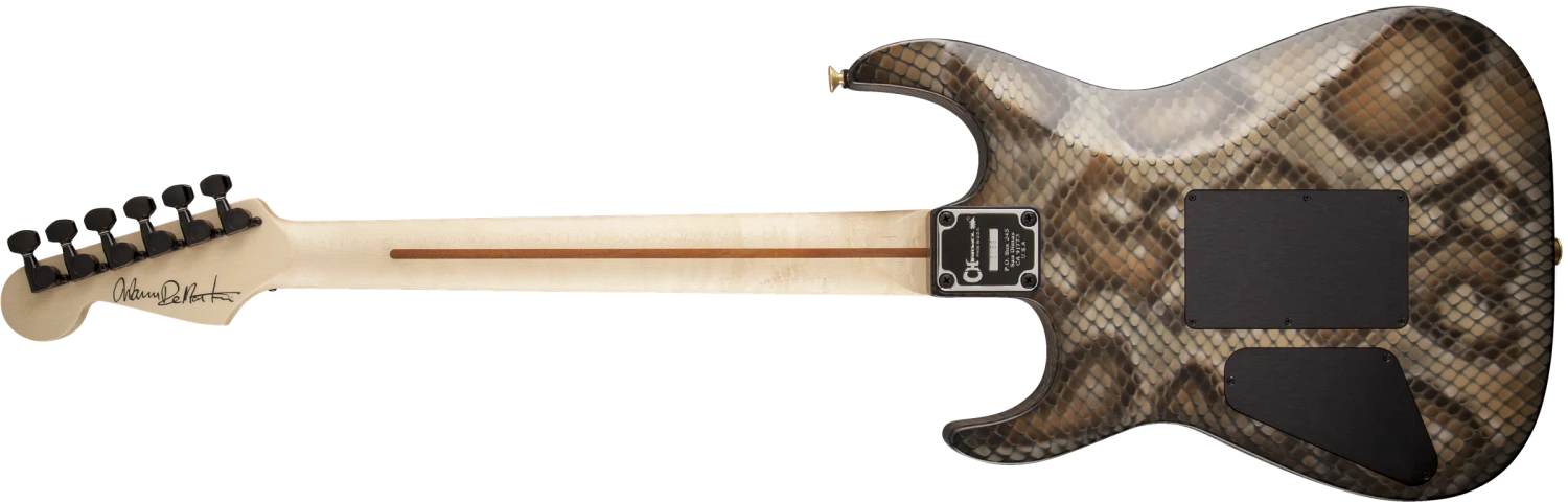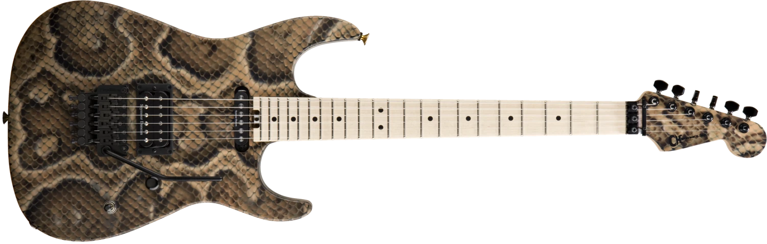 Ready to Ratt-n-Roll! The new Warren DeMartini Signature Snake was designed and built to WarrenÍs demanding specifications. Features include a Custom Designed Seymour Duncan humbucker, Seymour Duncan Quarter Pounder in the neck position, alder body, quartersawn rock maple neck with compound radius maple fingerboard and San Dimas neck backshape. Gotoh machine heads, Original Floyd Rose tremolo, and Charvel NOS brass strap buttons are standard equipment.