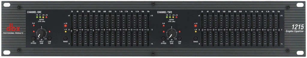 The 1215 is dual channel, 15 band 2/3 octave graphic equalizer. It was designed to meet the needs of the most demanding sound reinforcement environments, while offering the simplicity of straightforward controls. The sliders of the 1215 are 45mm center detent, with two selectable boost/cut ranges for precise gain adjustments. The unit features high pass filters with bypass, active balanced input and output connections, chassis/signal ground lift capabilities for quick hum isolation and an internal power supply. Multiple input and output configurations are provided for ease of use. The XLR and 1/4″ TRS connectors use active balanced, low noise circuitry, with the addition of barrier strips. The 1215 was precision engineered to provide years of maintenance-free operation in any application. The magnetically isolated transformer, RF-filtered inputs and outputs, and power-off hard-wire relay bypass with two second power up delay, ensures compatibility with all types of installations.