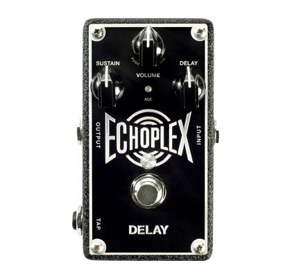 Dunlop EP103 Echoplex® Delay Guitar Pedal The Echoplex® EP-3 tape echo unit is famous for its deliciously warm, organic modulation and sweet musical voice—a key component to some of the most iconic guitar tones from the ’60s and ’70s. The original EP-3 units, however, are expensive, temperamental, and larger than a VCR. That’s where the EP103 Echoplex Delay comes in. It’s the size of a Phase 90, and it delivers the EP-3’s legendary tones with a simple control interface and a hi-fi all-analog dry path. The Delay control sets the time between repeats—from 4 to 750ms—the Sustain control sets the number of repeats, and the Volume control sets the output level of your repeats. Where the sound of this pedal really shines, though, is in Age mode. By default, your pedal performs as a perfectly-calibrated, factory-fresh tape echo machine would— bright and clear tape with subtle wow and flutter modulation. A quick push of the Volume knob lets you “age” the sound of your repeats, darkening the tone, upping the tape saturation (distortion), and increasing modulation and tape distress as you turn the knob clockwise. The EP103’s delay signal gets the same tonal conditioning that the EP101 Echoplex Preamp provides, while the dry path is left untouched. For the full EP-3 experience, put that secret sauce on your dry signal by running the EP101 in front of the EP103. The Echoplex Delay also features tap tempo functionality, for up to 4 seconds of delay time, when you hook up an M199 MXR Tap Tempo Switch. The dry path is all analog with Constant Headroom Technology™—providing a full 20 volts of headroom—and a choice of true relay or trails bypass. The EP103 can be set for 100% wet mode along with stereo input and output modes. No tape cartridges required! Features Vintage Echoplex EP-3 tape echo warmth and modulation Age control varies delay tone from pristine to dark and dirty 40–750ms of delay time