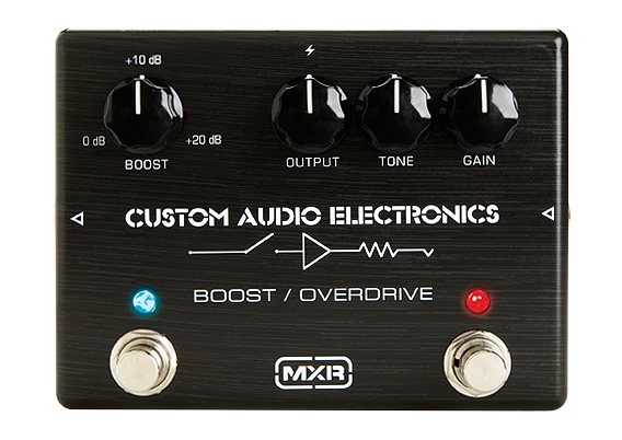 The MC402 Boost/Overdrive offers the combination of a simple dynamic overdrive and an independent clean boost circuit—all in one compact pedal. The overdrive section is truly “classic”, adding warmth, sustain and punch, without coloring your sound. It can go from a bluesy, slightly overdriven sound to full-metal crunch with a twist of the gain knob. The MC402 also cleans up nicely when you roll back your guitar volume, making it extremely touch sensitive and responsive to picking dynamics, without becoming thin sounding. The boost circuit alone is a bonus, as it is the exact same circuit CAE has used for years to solve a wide variety of signal conditioning problems in major guitar systems. The MC402’s high quality components provide quiet operation and trouble-free interaction with other pedals on your board. In keeping with the CAE tradition, the design is simple and straight forward, with a minimum of controls—only what is necessary to do the job.