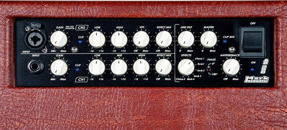 The AC 101H 150W acoustic combo amp from DV Mark features impressive musical clarity, tonal flexibility, satisfying bottom end from DV Mark 10-in. custom speaker and smooth and crisp highs from the 1-in. voice coil tweeter of the Markacoustic AC 101H. Now with a new brown cool look, it’s the ideal amp for a wide range of acoustic instruments, from acoustic guitar to acoustic bass, harp, cello, accordion, etc. The DV Mark AC 101H includes all the features that acoustic musicians need: 48V phantom power for use with condenser microphones, etc., feedback control and phase reverse to easily manage feedback problems and capture the true essence of your acoustic sound while also providing you with serious headroom, pre/post EQ switch for the XLR DI, FX send/return, tuner out and a next generation of digital reverb and chorus, sweet sounding, warm and natural.