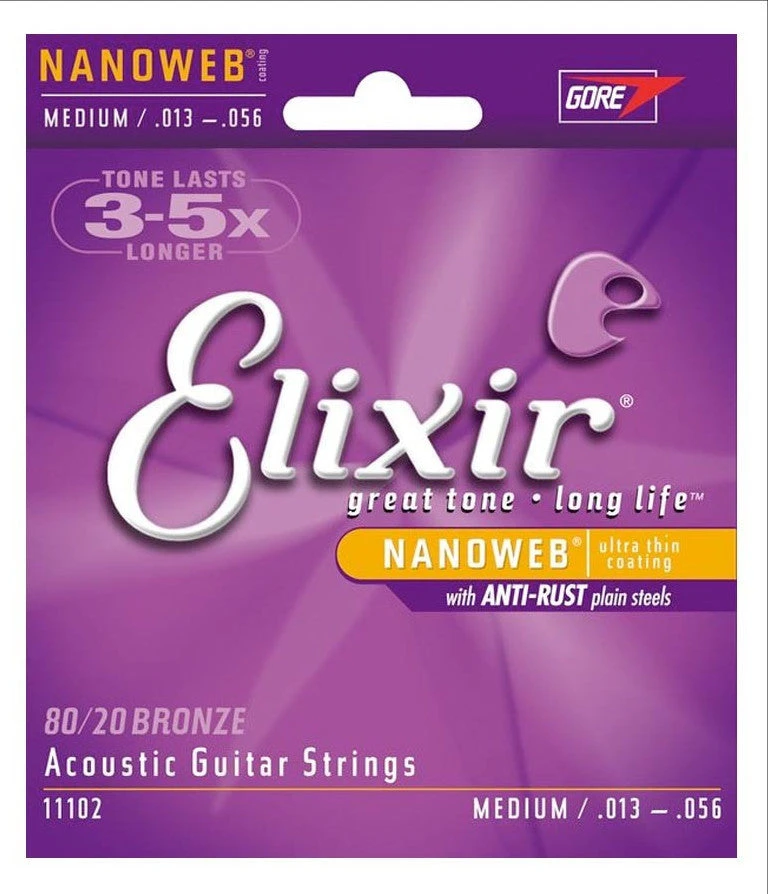 These Elixir Strings feature an ultra thin Nanoweb coating and have the bright tone and punch of non-coated strings while maintaining the feel like traditional strings. Elixir Strings are coated in a unique way to protect wound strings from your DNA and other contaminants. A flexible, strong, yet micro-thin polymer tube defends the Critical Zone of Tone from invading enemies. Nothing (including the coating) gets between the windings. The result is that strings sound and feel their best three to five times longer than ordinary strings. The same feel, bright tone and punch of non-coated strings.
