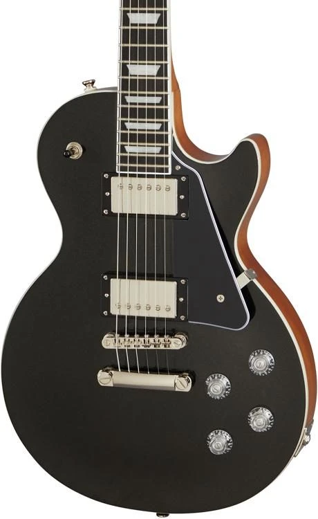 Epiphone’s new Les Paul Modern from the “Inspired by Gibson Collection” brings a new look and sound to the world’s greatest electric guitar. Featuring a weight relief Mahogany body with Maple Cap and contoured heel, ProBucker™ pickups with coilsplitting, phase switching, and a treble bleed circuit. Plus, Grover® Locking Rotomatic tuners with Tulip Buttons with an 18:1 ratio, Graph Tech® nut, and an Ebony fingerboard.