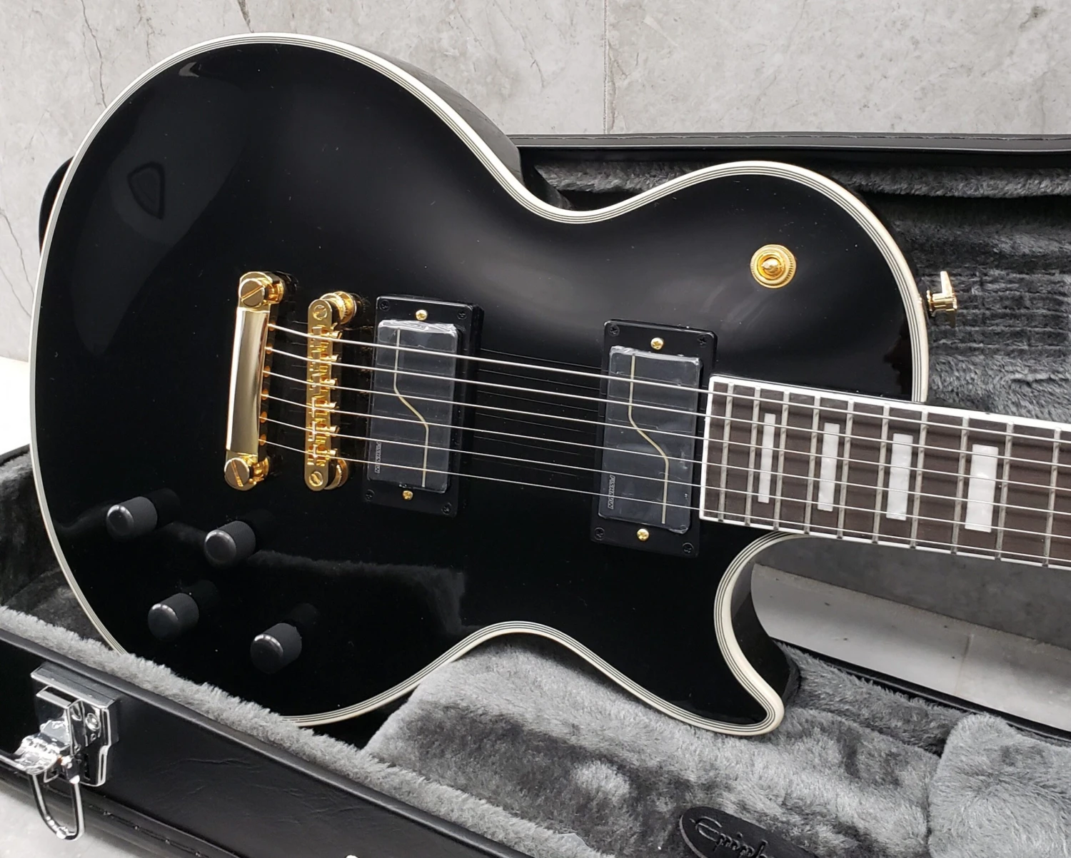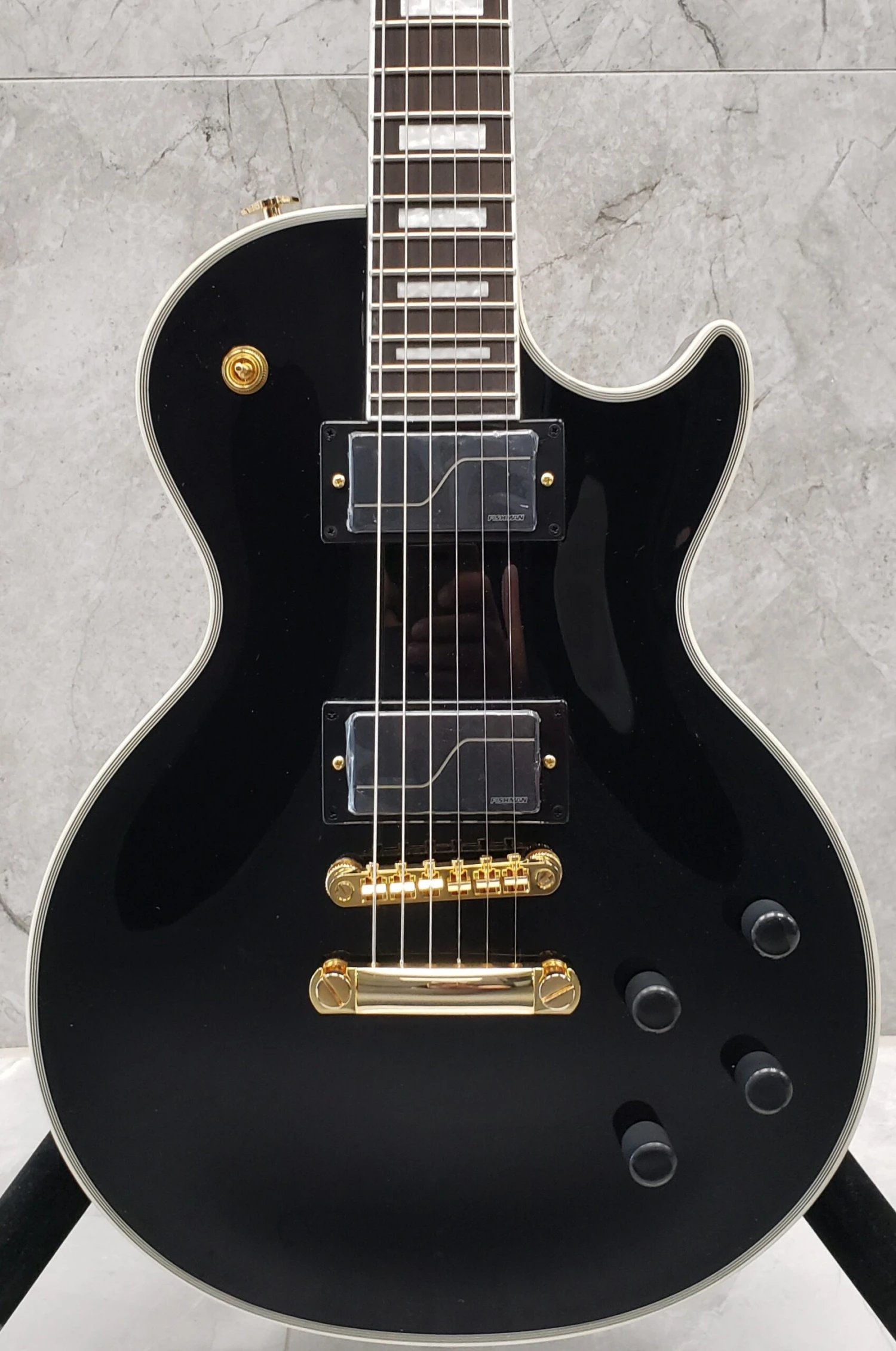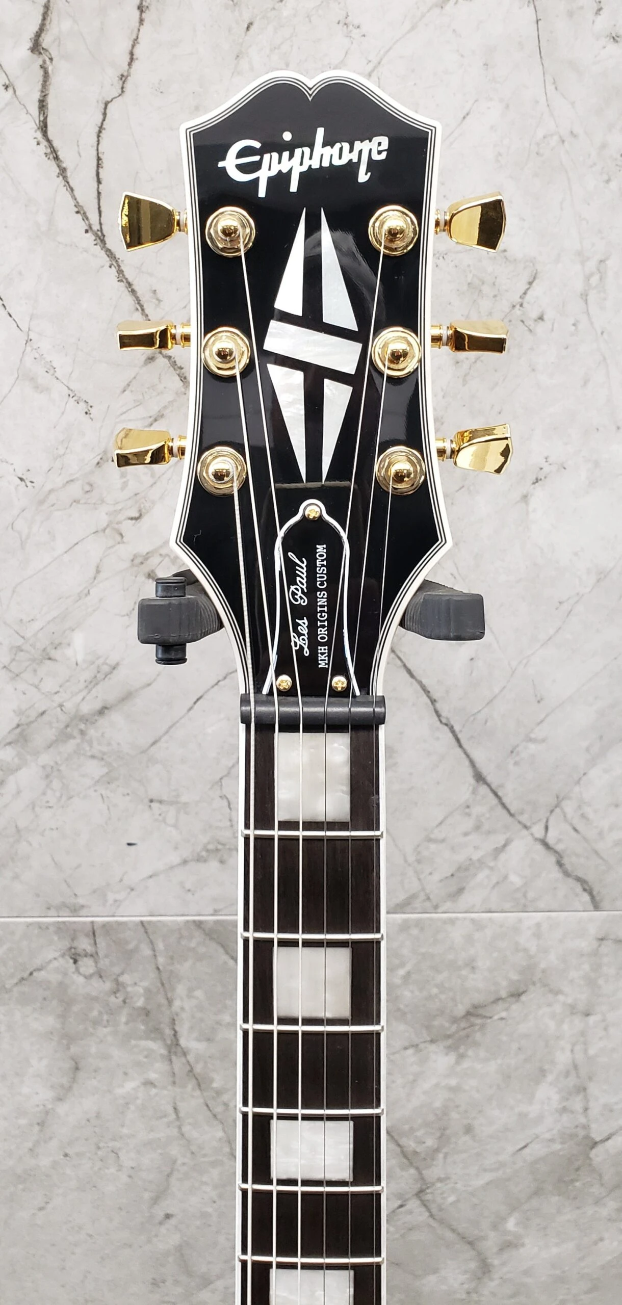 Epiphone is proud to present the third signature model designed in partnership with Trivium’s extraordinarily talented Matt Heafy – the Matt Heafy Les Paul Custom Origins. It features a pair of custom-voiced Fishman Fluence pickups. Each delivers three distinct tones. The Alnico neck pickup provides a modern, active, high output Alnico humbucker sound, a crisp, clean, and fluid neck humbucker sound, and a glassy, scooped, hi-fi single coil sound. The Ceramic bridge pickup offers a choice of modern, active, high-output ceramic humbucker tone, high output passive ceramic hum bucker tone, and a cutting, overwound single coil tone. These tonal options are selected with push/pull volume and tone pots. The maple-capped mahogany body has modern weight relief for hours of comfortable play, and the mahogany neck has a fast-playing SpeedTaper D profile and a contoured heel for exceptional upper-fret access. Gold hardware, including locking Grover Rotomatic tuners with Tulip buttons, and classic Les Paul Custom cosmetics make this a standout guitar on-stage. Available in Ebony and Bone White gloss finishes. A custom hardshell case is included.