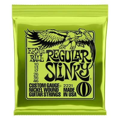 These Ernie Ball 2221 Nickel Regular Slinky Electric Guitar Strings are a smart choice for anyone who owns a compatible instrument. Made with nickel-plated steel wire wrapped around tin-plated, hex-shaped, steel-core wire, these strings are extremely durable and withstand heavy use without a problem. These Ernie Ball Electric Guitar Strings provide a crisp, ringing sound with pleasing overtones. This weight balances maximum response from your pickups with playability and bendability. Crafted with precision, these strings meet the highest standards and most exacting specs to assure consistency, optimum performance and long life. Jimmy Page, Eric Clapton, Steve Vai and Slash are among the long list of Slinky players. These Ernie Ball strings are simple to install.