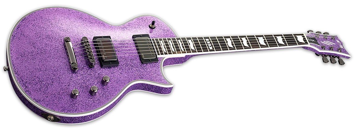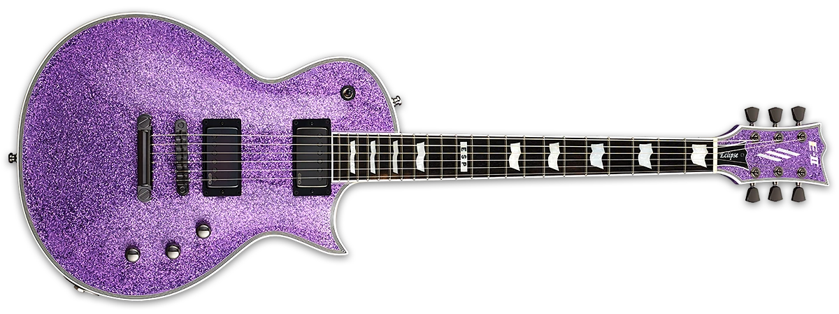 Formerly called “ESP Standard”, all ESP E-II instruments are created at our ESP factory in Tokyo, Japan, and are designed for professional players who accept no compromises in tone, feel, or reliability for their guitars and basses. Of the thousands and thousands of Eclipse guitars ESP has created, few are as outstanding — or eye-grabbing — as the ESP E-II Eclipse DB in Purple Sparkle finish. It starts with set-thru construction of its maple-capped mahogany body and thin U-shaped mahogany neck with ebony fingerboard. It continues with extra-thick white binding on the body, neck and headstock. Next, add high-end components like a bone nut, Schaller straplock, Gotoh locking tuners, and a Gotoh TOM bridge and tailpiece. Then get the sound you want from a set of EMG 66 (neck) and EMG 57 (bridge) active pickups. Ready for serious professional use on stage or in the studio, the E-II Eclipse-DB includes an ESP hardshell form-fitting case