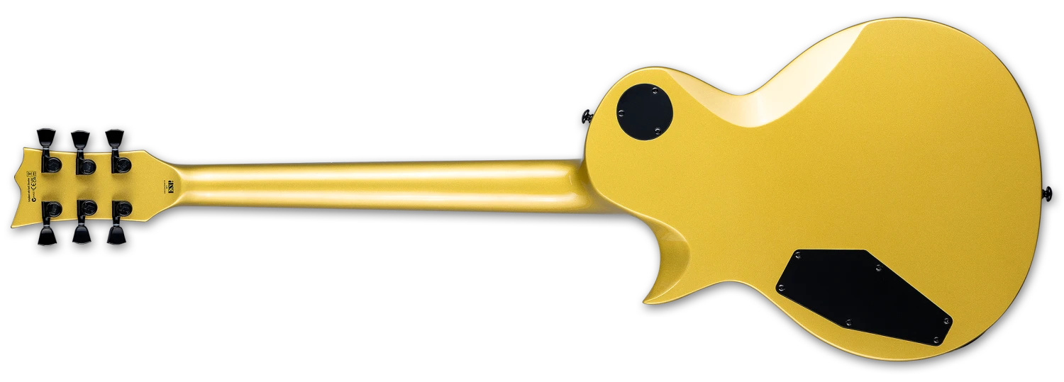 Commemorating the 50th anniversary of ESP Guitars, the limited-edition LTD EC-2025 50th Anniversary in Metallic Gold finish has set-thru construction at 24.75” scale, a mahogany body with maple cap, a three-piece mahogany neck, and a Macassar ebony fingerboard with 24 extra-jumbo stainless steel frets, and a special “50” graphic fingerboard inlay, as well as a 50th Anniversary logo on the headstock. With black hardware and single-ply binding throughout, it features LTD locking tuners, a TonePros locking bridge and tailpiece, and an exclusive Seymour Duncan “Custom 14” / APH-1N set with custom covers. Coil splitting is accessible with a push-pull control.