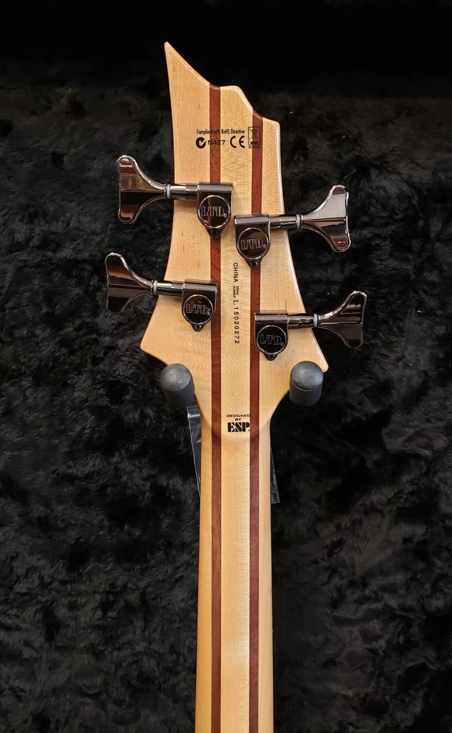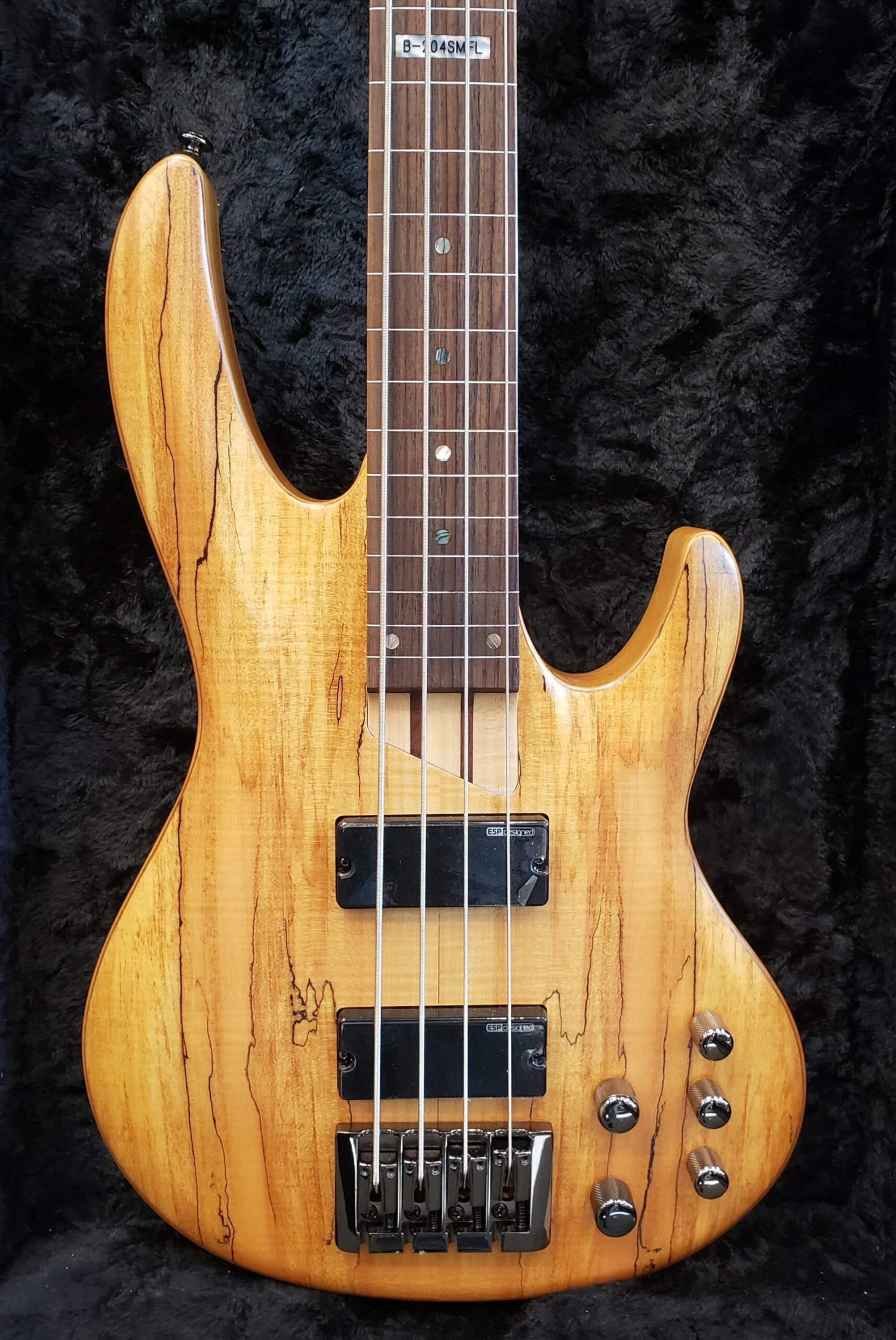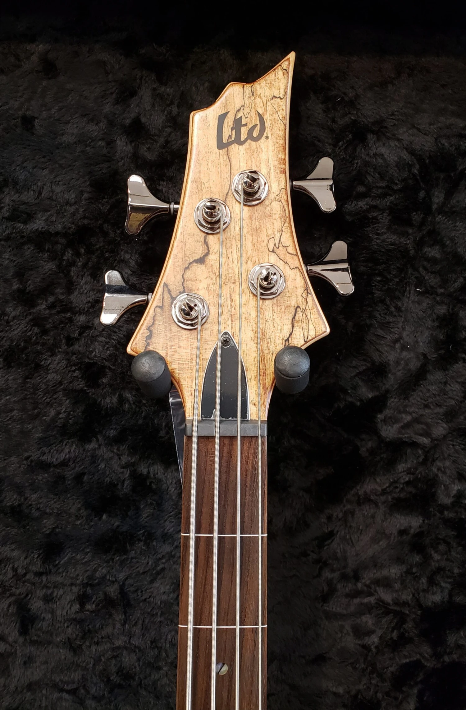 ESP LTD B204SMFL Spalted Maple Natural Satin The ESP LTD B204 Fretless 4 String Bass Guitar delivers high performance with the exotic Spalted Maple top. A punchy and bright sound that’s great for slap bass the ESP LTD B204 features an Ash body, ESP SB4 pickups and a 3 band active EQ, rosewood fingerboard, and 5 piece maple/rosewood neck. Features Construction: Bolt-On Scale: 34 inches Body: Ash Top: Spalted Maple Neck: 5 Piece Maple/Rosewood Neck Fingerboard: Rosewood Nut: 40mm Standard Contour: Thin U Neck Hardware: Black Nickel Tuners: ESP Tuners Bridge: ESP BB-604 Bridge with String-Thru-Body Pickups: ESP SB-4 (Bridge and Neck) Active Electronics: ESP ABQ-3 3-Band Active EQ