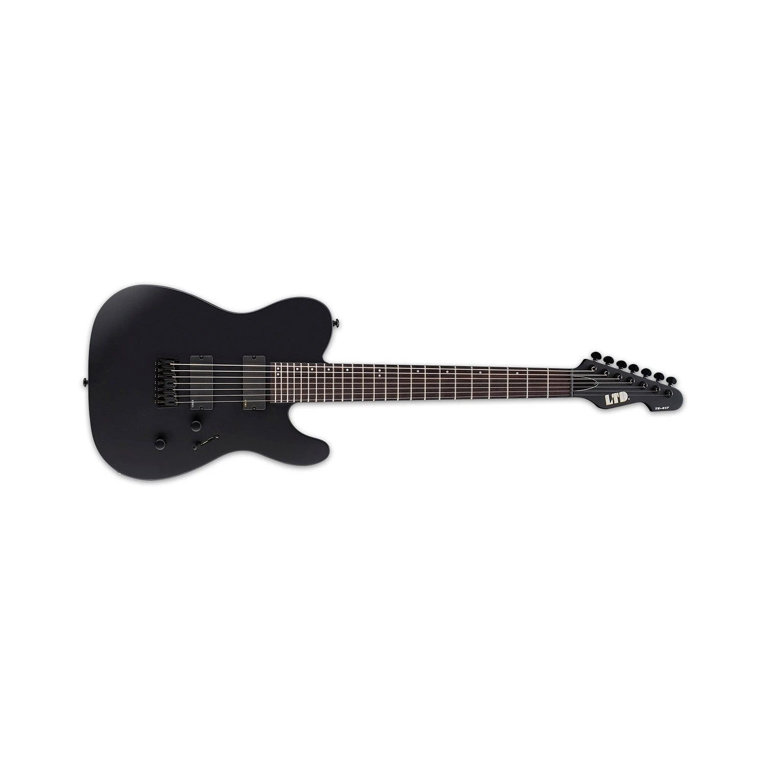 A classic shape gets updated with tons contemporary vibe and modern performance feel, in a 7-string guitar! The LTD TE-417 is a mahogany body shred machine that’s great for hard rock, metal, and other aggressive music genres, and allows for the extended lower range you need. It includes set-thru construction, with a thin U-shaped maple neck and a pau ferro fingerboard with 24XJ frets. Active electronic pickups give the TE-417 a powerful variety of tones, with EMG 707 (neck) and EMG 81-7 (bridge) pickups. High-quality components include Grover tuners, and it’s offered in menacing Black Satin and Snow White Satin finishes.