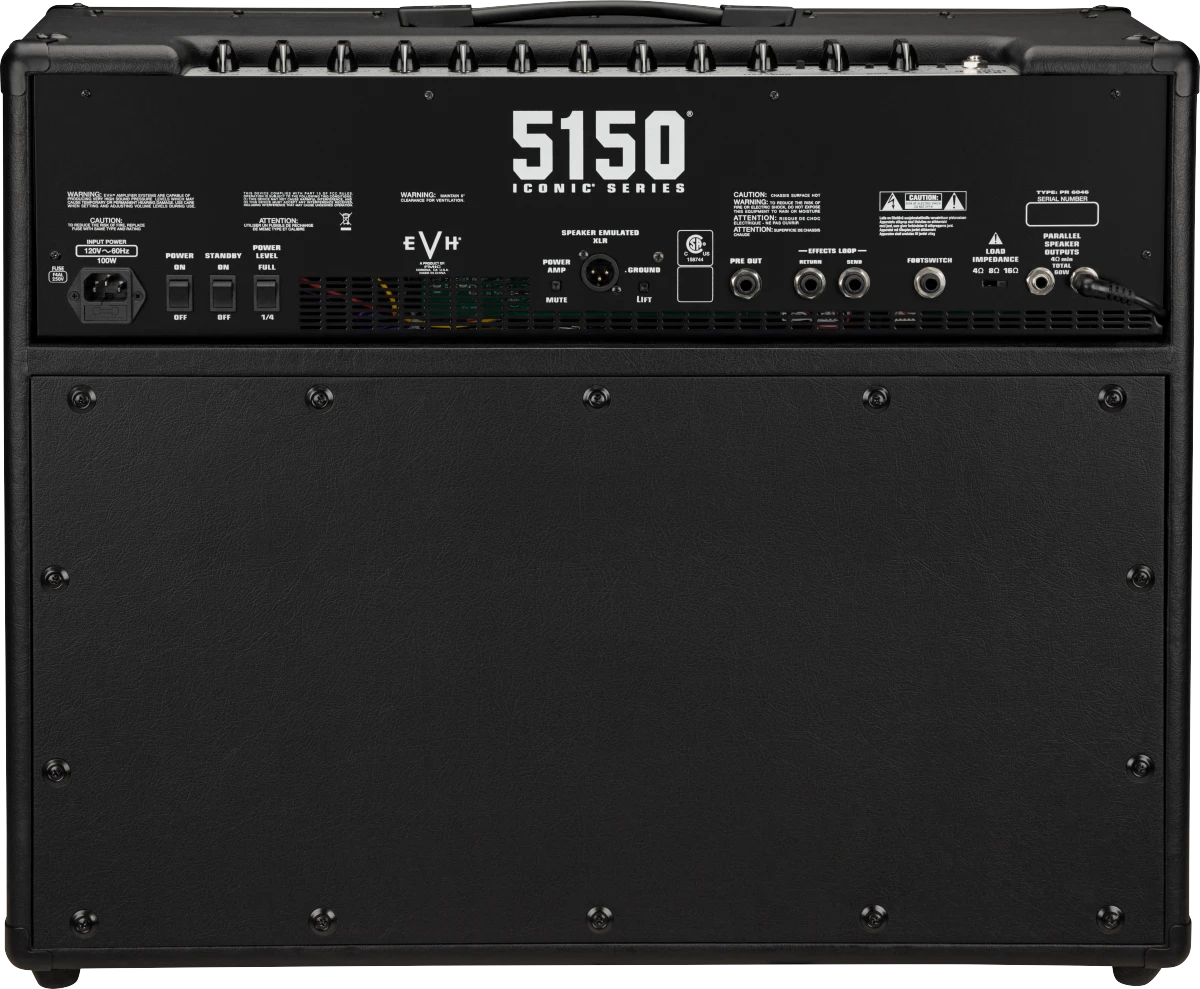 Collaboratively designed by the EVH team and led by renowned amp engineer, James Brown, the 5150® Iconic® Series 60-watt 2×12 combo is powered by two 6L6 power tubes and voiced by a complex, multi-stage hybrid preamp section anchored by a pair of ECC83 tubes providing all the fire power the modern guitarist needs. The cabinet features special internal plywood baffling for tight and increased bass response, and houses a pair of custom-designed EVH 12” Celestion® speakers voiced specifically for this preamp circuit, so that the pristine cleans and searing high gain tones are tight, clear and articulate.