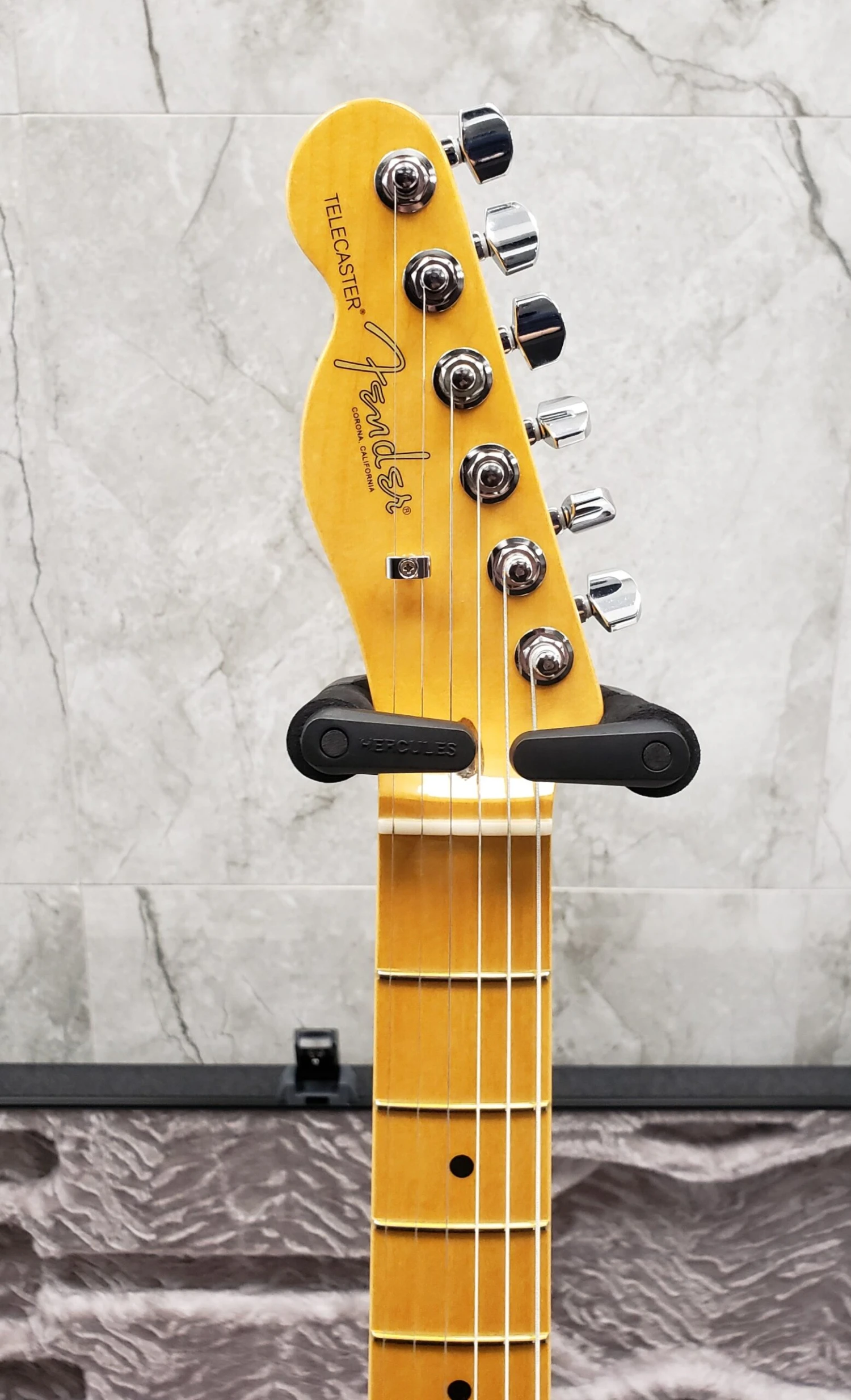 Our popular Deep “C” neck now sports smooth rolled fingerboard edges, a “Super-Natural” satin finish and a newly sculpted neck heel for a supremely comfortable feel and easy access to the upper register. New V-Mod II Telecaster single-coil pickups are more articulate than ever while delivering the twang, snap and snarl that made the Tele famous. The new top-load/string-through bridge with compensated “bullet” saddles is our most comfortable, flexible Tele bridge yet – retaining classic brass-saddle tone and providing excellent intonation and flexible setup options, allowing you to tailor the tension and tone of each string to your liking.