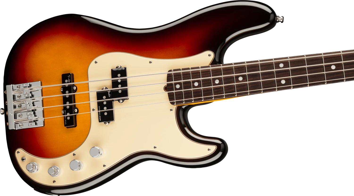 American Ultra is our most advanced series of guitars and basses for discerning players who demand the ultimate in precision, performance and tone. The American Ultra Precision Bass features a unique “Modern D” neck profile with rolled fingerboard edges for hours of playing comfort, and the tapered neck heel allows easy access to the highest register. A speedy 10”-14” compound-radius fingerboard with 21 medium-jumbo frets means effortless and accurate soloing, while the Ultra Noiseless™ pickups and advanced wiring options provide endless tonal possibilities – without hum. This versatile, state-of-the-art instrument will inspire you to push your playing to new heights.