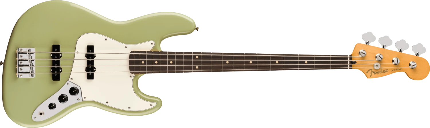 The Player II Jazz Bass radiates timeless Fender charm, but under the hood, it’s primed for today’s players. Everything about the neck is designed for fast and fluid playability, from the Modern “C”-profile with silky satin urethane finish on the back to the comfy 9.5”-radius slab rosewood or maple fingerboard with smooth rolled edges and 20 medium jumbo frets. A classic alder body is available in both timeless Fender finishes and never-before-seen colors unearthed from the archives. Player Series Alnico V Single-Coil J bass® pickups offer sweet highs, growling mids and seismic lows that elevate any genre. An adjustable 4-saddle bridge, single-groove steel saddles and open-gear tuners ensure precise tuning stability for the flexibility to explore endless sonic possibilities.