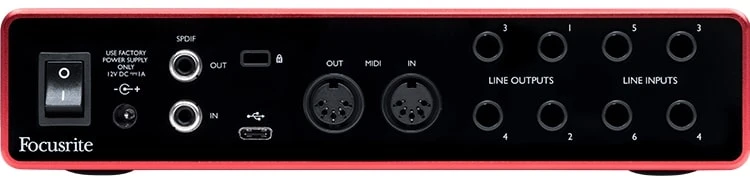 - Six balanced line inputs, for connecting synths or other line-level audio, and four balanced outputs, for monitoring and effects sends
