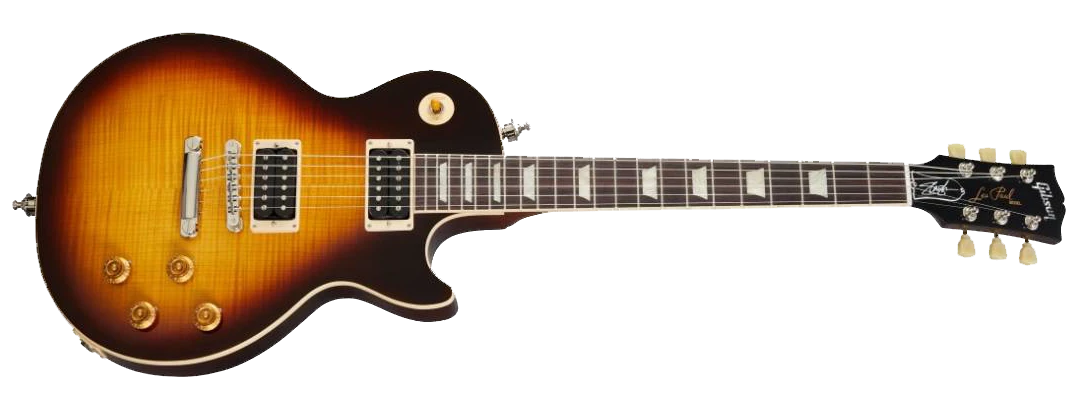 Gibson and Slash are proud to present the Slash Collection Gibson Les Paul Standard. It represents influential Gibson guitars Slash has used during his career, inspiring multiple generations of players around the world. The Slash Collection of Gibson guitars can be seen live on stage with Slash today. Each Slash Collection Gibson Les Paul Standard features a AAA flamed maple top, a solid mahogany body and Slash’s personal touches including a C-shape neck profile, signature Gibson “SlashBucker” pickups, color coordinated hardware appointments, hand-wired electronics with orange drop capacitors and a vintage style brown hardshell case. Exclusive to the Slash Collection are Slash’s “Scully” signature drawing on the back of the headstock, Slash’s signature on the truss rod cover, a blank truss rod cover in the case, Slash’s new Ernie Ball strings, and four Slash Jim Dunlop Tortex® picks.