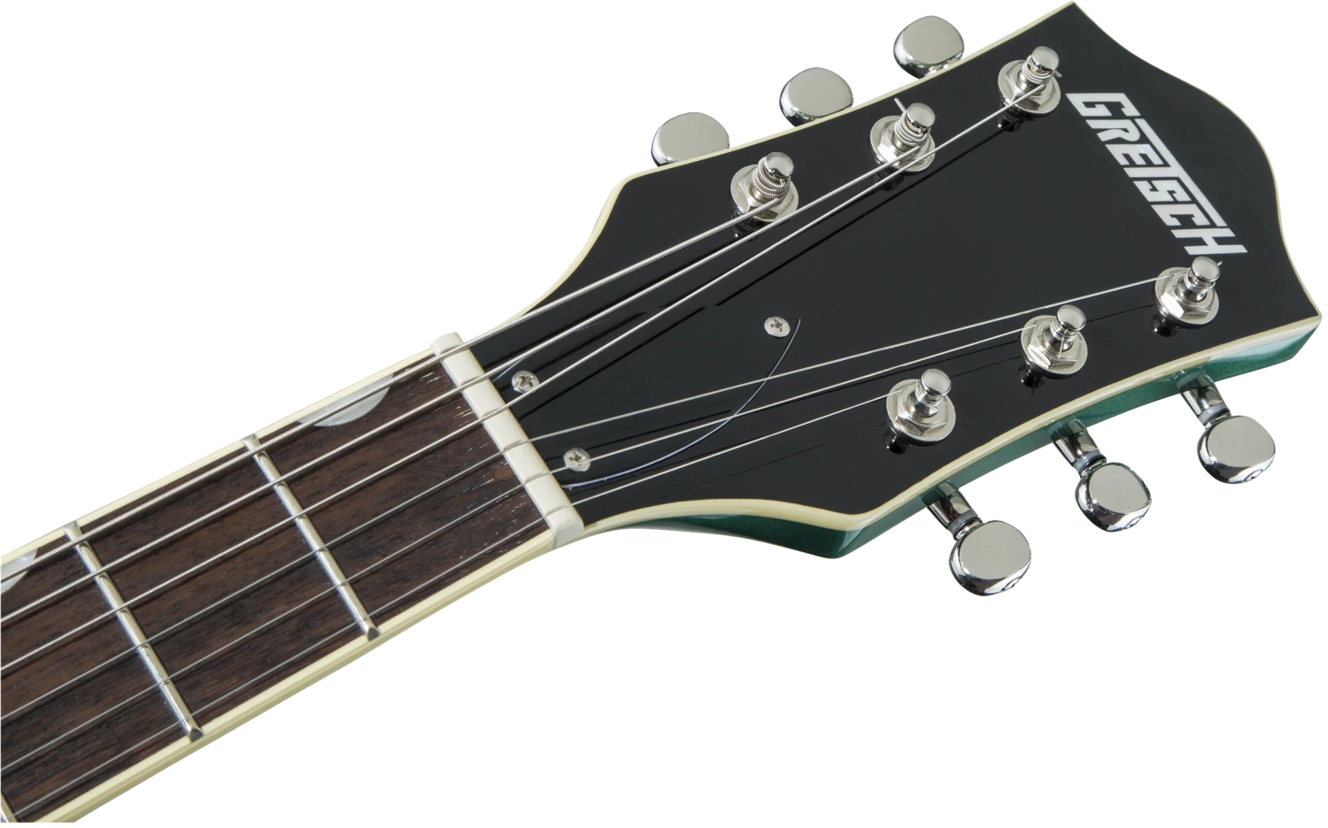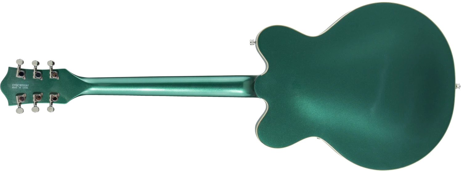 The G5622T is styled in various stunning finishes featuring aged white body binding with multi-ply purfling and nickel hardware. The Aspen Green, Dark Cherry Metallic and Georgia Green finishes feature silver pickguard and silver pickup bezels, while the Imperial Stain and Orange Stain finishes offer a gold pickguard with gold pickup bezels.