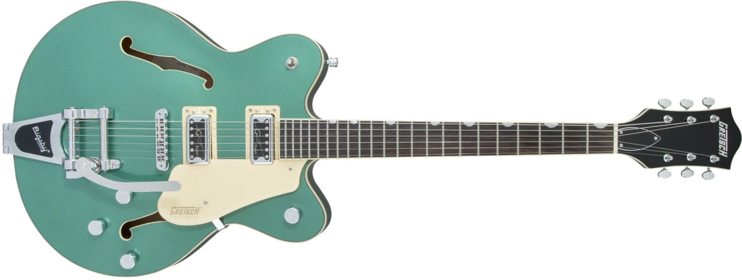 Alive and loud, Electromatic® Center Block guitars are designed for that pure and powerful Gretsch sound at high volume. The G5622T Electromatic® Center Block with Bigsby® features a double-cutaway maple body with chambered spruce center block for dynamic resonance, high gain power and lightweight comfort.