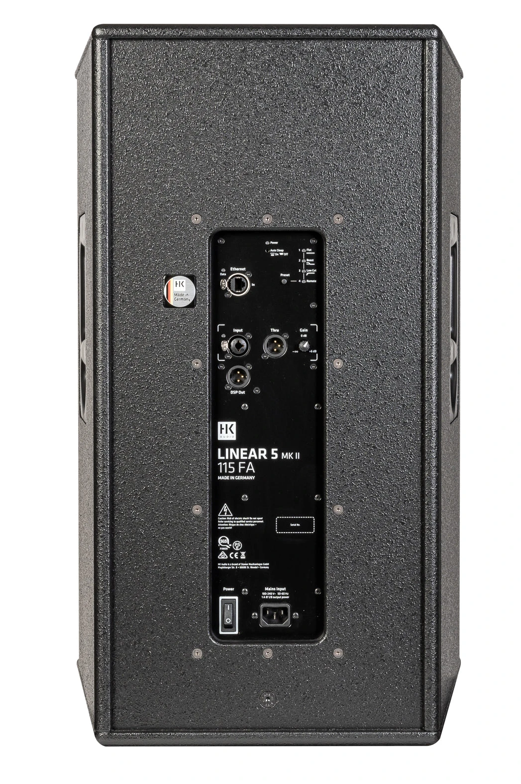 - Front grille: 2 mm metal grille backed with black acoustic foam