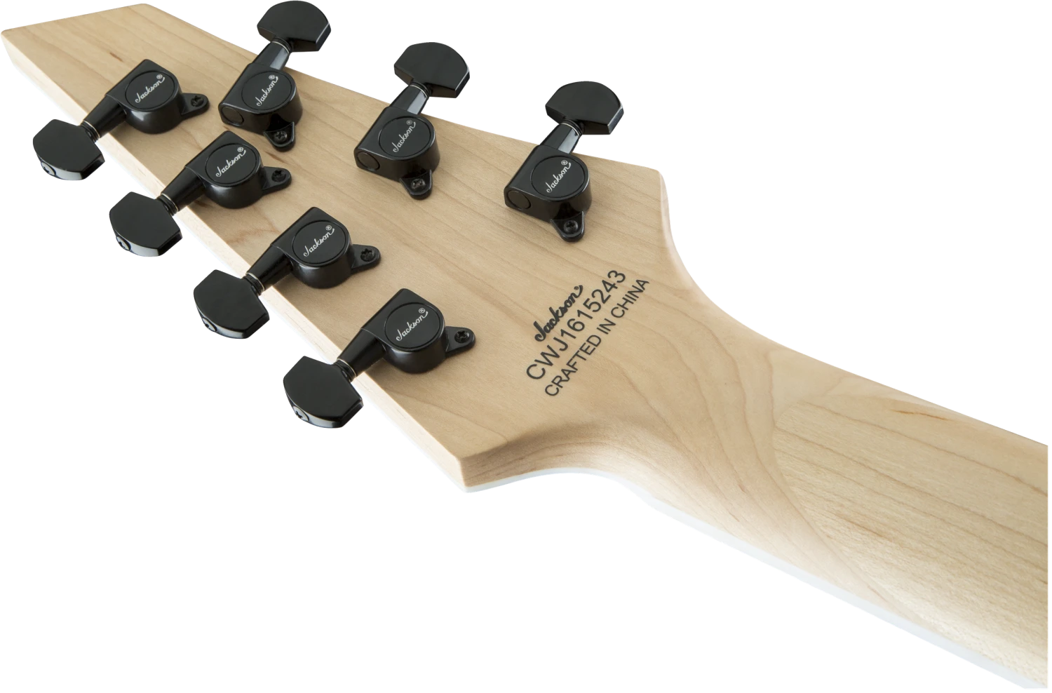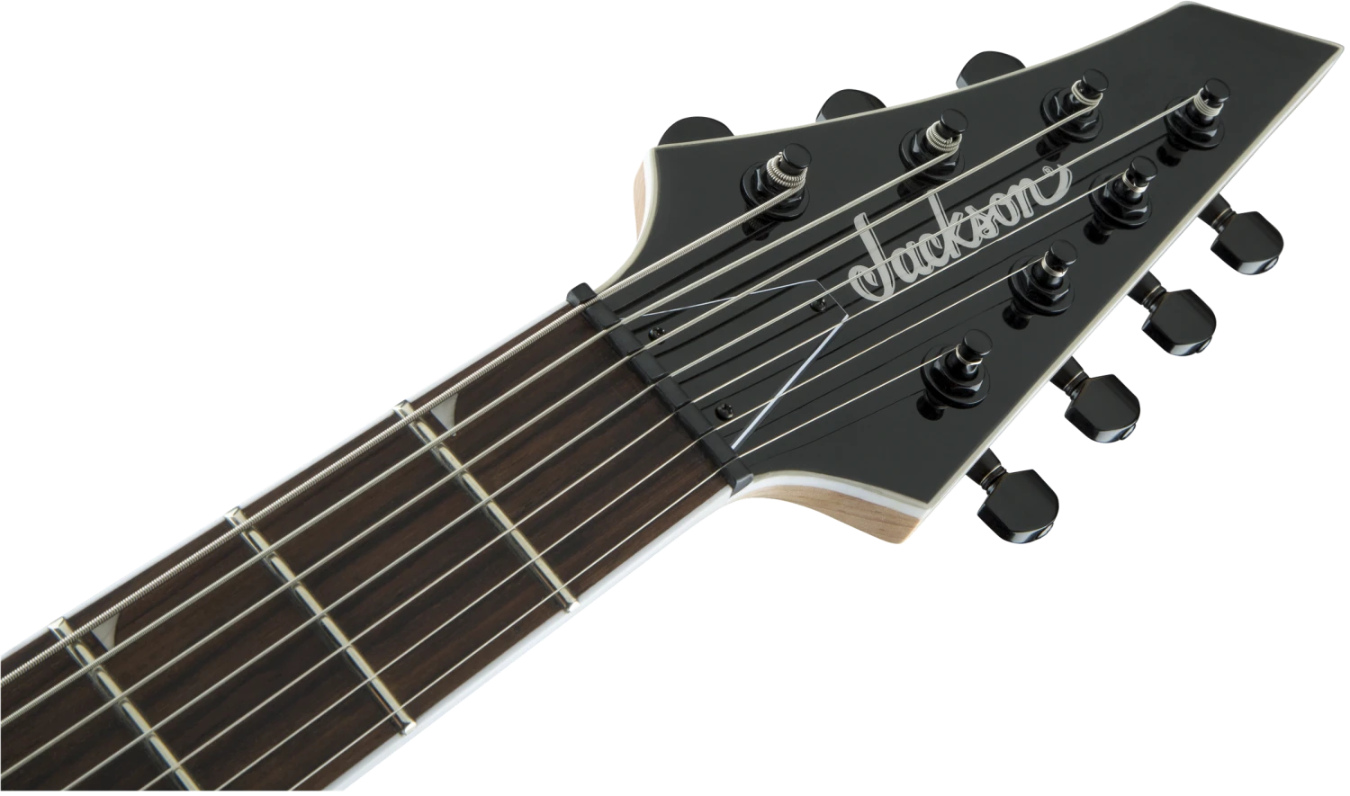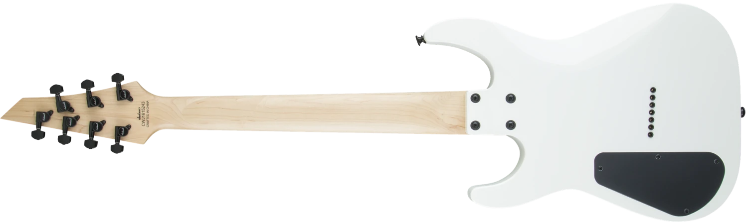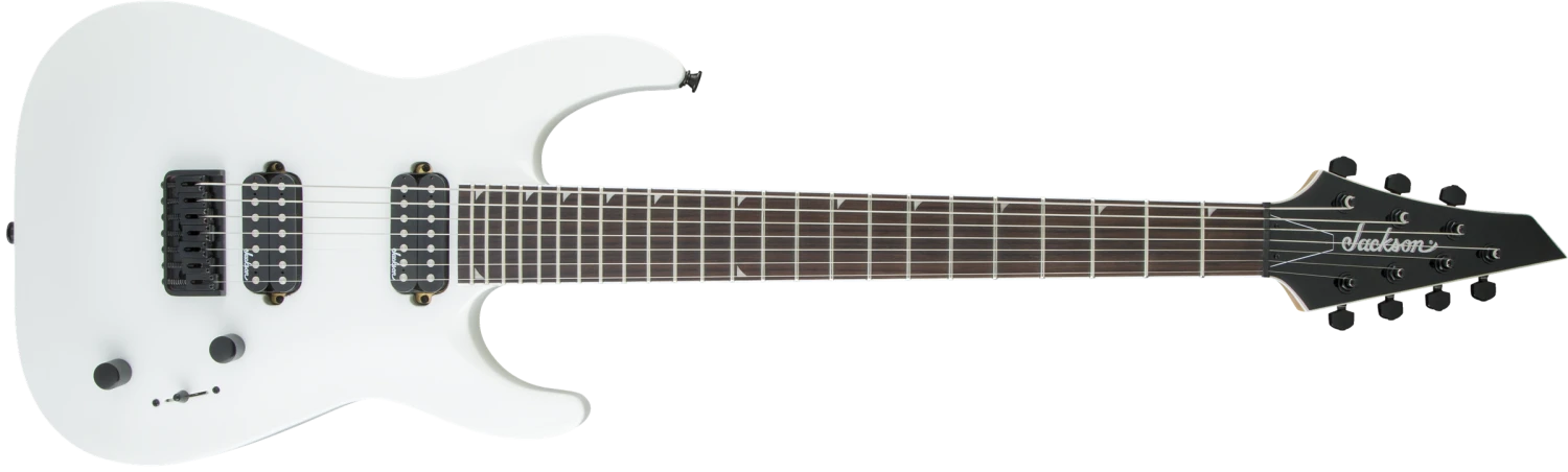 Powered by direct mount dual Jackson high-output humbucking pickups, the JS32-7 DKA HT is also equipped with a three-way blade switch, single volume and tone controls, compensated string-through-body fixed Jackson HT7 bridge, sealed die-cast tuners and our 3×4 (3 over, 4 under) AT-1 headstock.