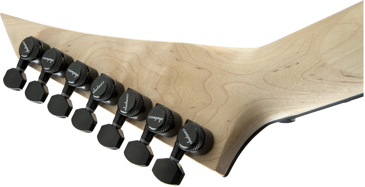 This metal machine is powered by dual direct mount humbucking pickups —Seymour Duncan® Nazgûl (bridge) and Seymour Duncan® Sentient (neck)— and is also equipped with master volume and tone controls and a five-way blade switch to refine tone, a Jackson® HT7 string-through-body hardtail bridge and Dunlop dual-locking StrapLok® retainers.