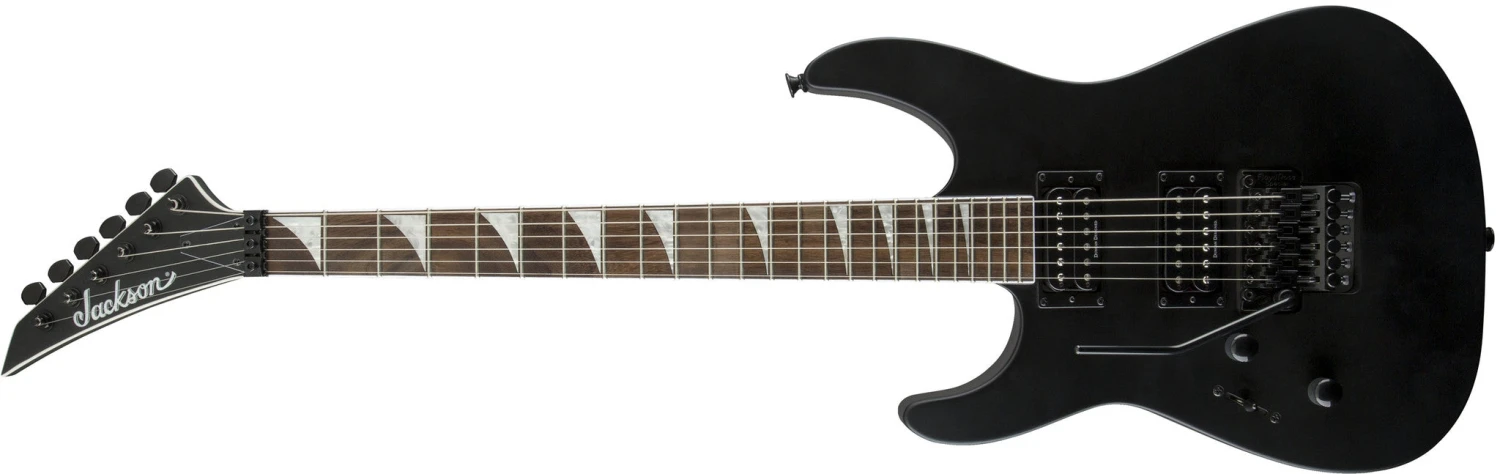 Enjoy highly dynamic response and massive sound from the pair of Duncan Designed㢠pickups; a biting HB-103B humbucking bridge pickup is matched to a powerful HB-103N humbucking neck pickup for articulate tone, channeled by a master volume and tone controls, along with three-position blade switching. Ergonomically contoured, the basswood body and maple neck-through-body neck with tilt-back joint create thick tone and a playing experience like no other. Hardy graphite rods reinforce the three-piece neck for robust durability against temperature or humidity shifts while the ultra-fast 12-16 compound radius rosewood fingerboard is engineered for comfortable chording and riffing near the nut and bind-free bends as you move up the neck. The recessed Floyd Rose¨ Special double-locking tremolo is expressive and works together with the Floyd Rose Special locking nut to maintain Jackson۪s world-famous tuning stability.