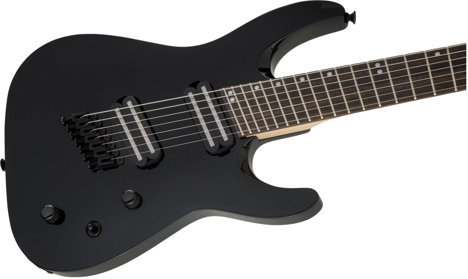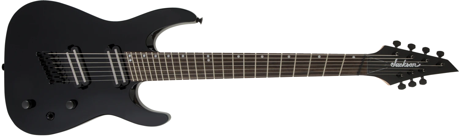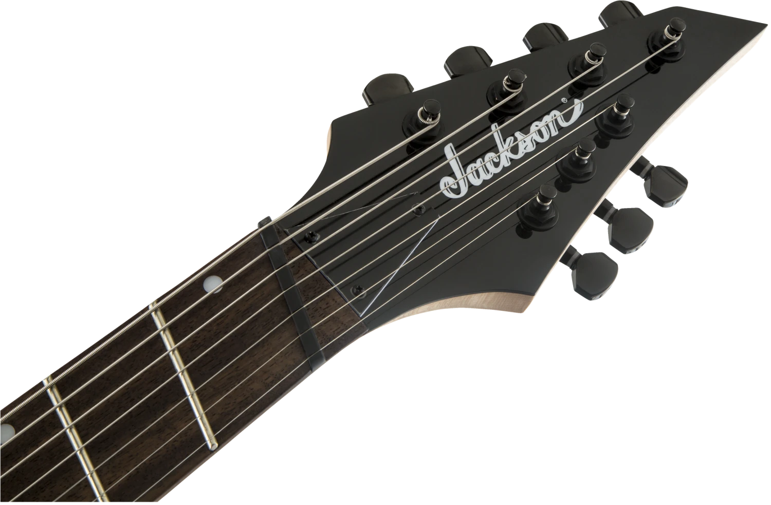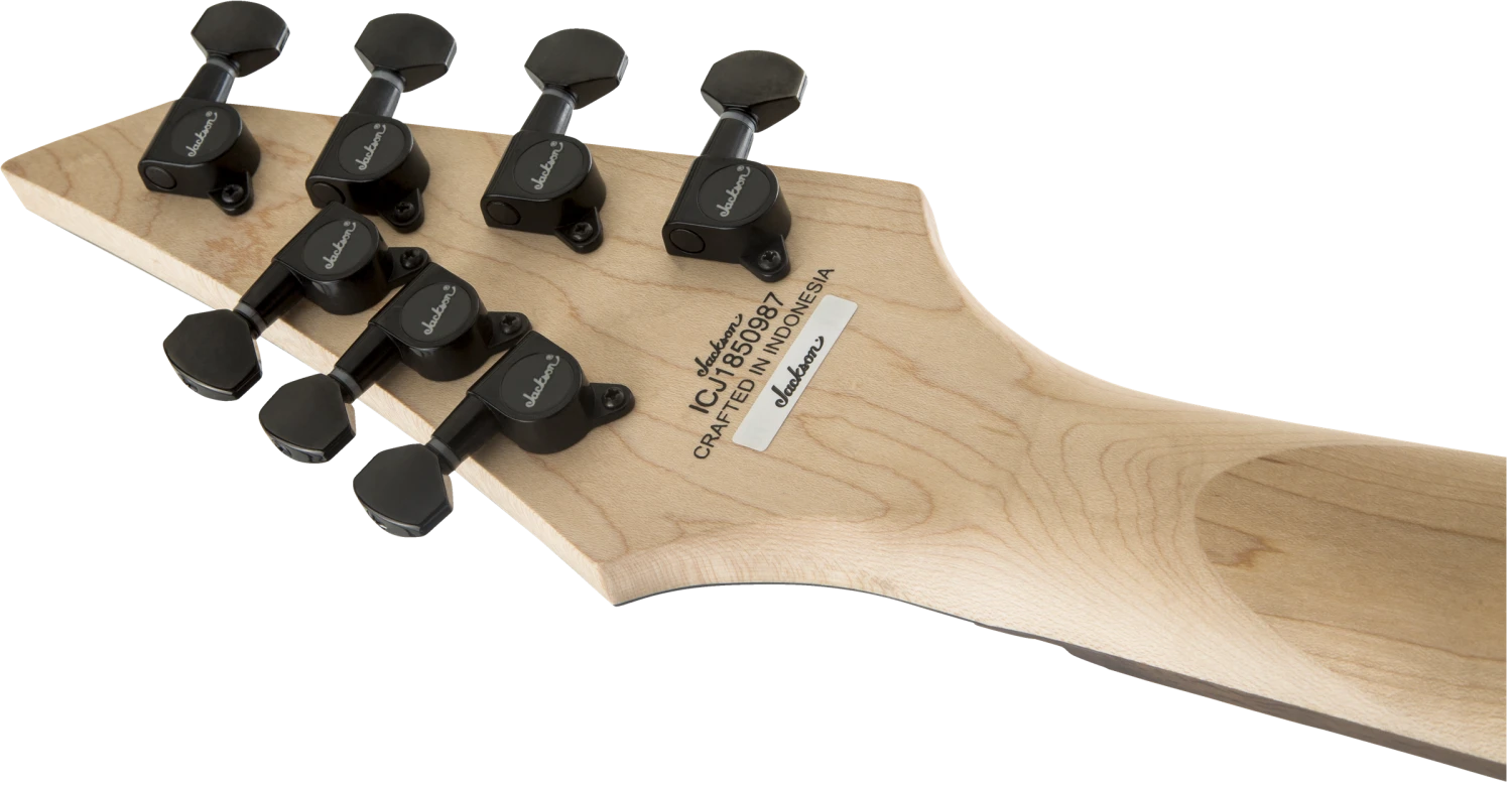 Dual Jackson uncovered 7-string blade humbucking pickups power this metal beast and can be shaped by a three-way toggle switch and single volume and tone controls.