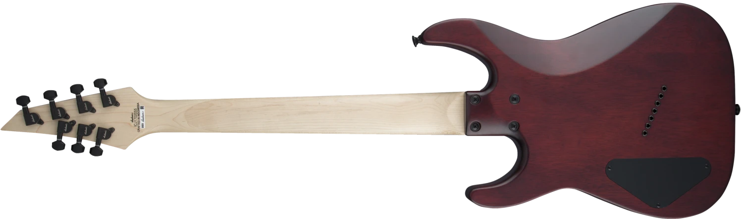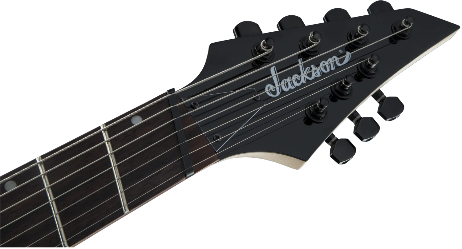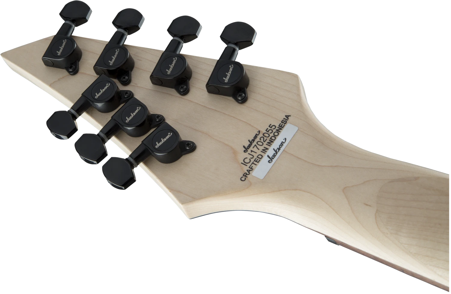 Dual Jackson uncovered 7-string blade humbucking pickups power this metal beast and can be shaped by a three-way toggle switch and single volume and tone controls.