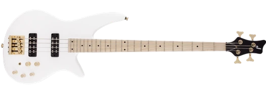 Featuring a unique 2×2 black headstock with an understated “J” logo, the budget-friendly SBXM IV comes in a classic Snow White finish with gleaming gold hardware.