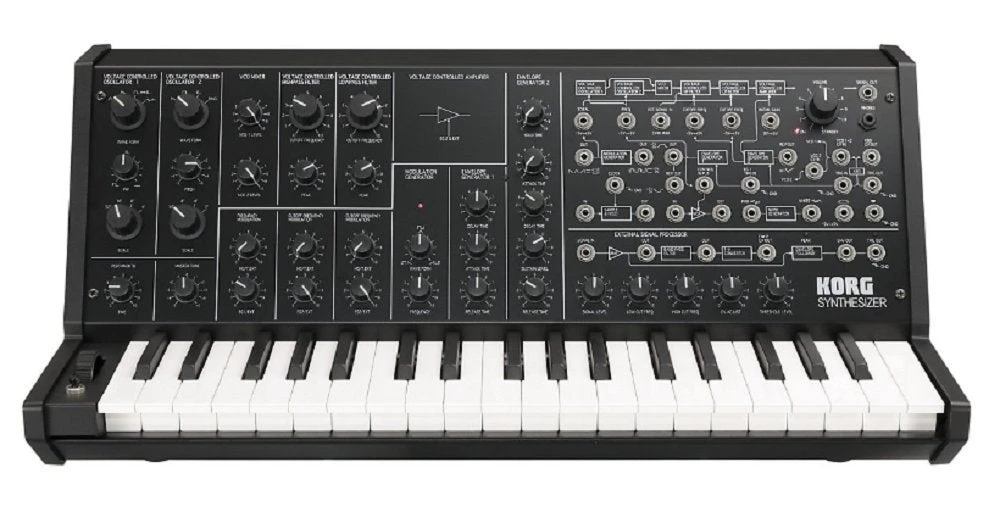 Korg MS-20 Mini Monophonic Synthesizer Korg’s MS-20 monophonic synthesizer, first introduced in 1978, is still a coveted instrument to this day, thanks to its thick, robust sound, its powerful, iconic analog filter, and its versatile patching options. Over 300,000 people have enjoyed the distinct MS-20 sounds from the original, from Korg’s MS-20 plug-in synth, and the iMS-20 iPad app. Today, the sounds of the MS-20 have been reborn as the MS-20 Mini. The same engineers who developed the original MS-20 have perfectly reproduced its circuitry and fitted it into a body that’s been shrunk to 86% of the original size, yet retains the distinctive look of the original that remains unfaded despite the passage of time. The MS-20 mini will amaze you with its absolutely authentic analog synth sound. A complete replication of the original analog circuitry The MS-20 mini painstakingly replicates the original MS-20. A development team led by the original engineers themselves worked to recreate the original circuitry, and when it was necessary to substitute a part, these engineers made the decisions based on careful listening, in order to reproduce the original sound faithfully. In fact, the sound of the MS-20 mini has a somewhat bright and extreme quality to it because its sound is that of an original MS-20 in mint condition at the time it went on sale, before any of the components aged. 2VCO / 2VCF / 2VCA / 2EG / 1LFO structure The MS-20 mini reproduces the distinctive synthesis of the MS-20; two oscillators with ring modulation, and envelope generators with hold and delay. The VCA maintains the basic design of the original, but it’s been modified to produce less noise than the original. Self-oscillating high-pass/low-pass filters with distinctive distortion One of the greatest characteristics of the MS-20 was its powerful filters, which provided resonance on both the high-pass and the low-pass. Maximizing the resonance would cause the filter to self-oscillate like an oscillator, producing a distinctive and dramatic tonal change that was acclaimed as inimitable, and was later used on the monotron and monotribe. The filter circuit was changed mid-way through the production lifecycle of the MS-20; the MS-20 mini uses the earlier filter, which was felt to be superior due to its more radical sound. External signal processor (ESP) for processing an external signal The ESP carries on the experimental spirit of MS-20; it allows you to use the pitch or volume of an external audio source to control the synthesizer. For example you can input an electric guitar and use the MS-20 mini as a guitar synthesizer, or input a mic and use it as a vocal synthesizer. Extremely flexible patching system The patching system provided to the right of the panel lets you create complex sounds by plugging-in cables to change the connections between the various units. The possibilities are limited only by the user’s imagination; different combinations of the modulation input/output and trigger, sample and hold, and noise generator can produce an incredible variety of sounds. By patching according to the MS-20 flow chart that’s printed on the panel, even the beginner can start taking advantage of these possibilities right away. Faithful recreation of the MS20 at 86% of the size MS-20’s design concept started by borrowing from the vertical layout found on larger and more expensive modular synths of its time, and then creating a more portable, inexpensive, and easier to use version. To make it even more approachable, the MS-20 mini has been shrunk to 86% of the size of the original MS-20. In spite of its smaller size, meticulous care has been taken to accurately reproduce the knob design and the printing. The patch cables have been changed from 1/4″ phone plugs to mini-plugs, and the newly-designed keyboard is also 86% of the original size. Replicates every detail of the original Our effort to remain faithful to the original is not limited to the unit itself. Even the package that contains the unit replicates the original as far as possible. Also included are the original MS-20 owner’s manual and settings chart, explaining how to create sounds. Now you can experience the excitement of the MS20, just like it was during its original release in 1978. MIDI IN connector and USB connector The MS-20 mini provides a MIDI IN jack for receiving note messages, and a USB-MIDI connector that can transmit and receive note messages. You can even connect the MS20 mini to your computer and play it from a sequencer.