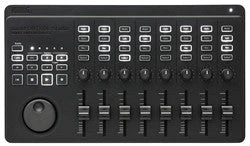 - 8 knobs, 8 siders, 32 buttons ([Mute/Solo/Rec/Select] x 8), Transport buttons (Beginning / Stop / Play / Rec / Rew / FF), Track (), Cycle, Marker (Set / ), and Scenes