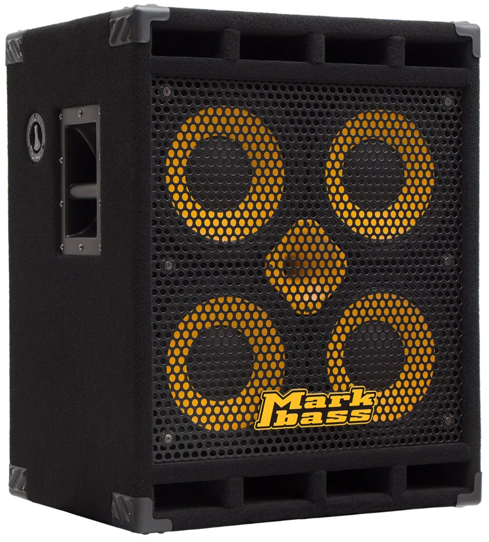 The Markbass Standard 104HF bass cab features the power of ultra-light Markbass Neodymium custom speakers to give you a great power-to-weight ratio. So while the Standard 104HF pumps out plenty of sound, it’s not a behemoth to carry around. The four 10″ woofers surround the 1″ HF compression driver with custom horn tweeter. The Standard 104HF bass cab is made of high-grade, multi-ply poplar manufactured to maximize sound quality. Protective corners and a grill protect the Markbass Standard 104HF when you’re between shows. The 104HF was runner up in the Bass Player Magazine reader’s poll.
