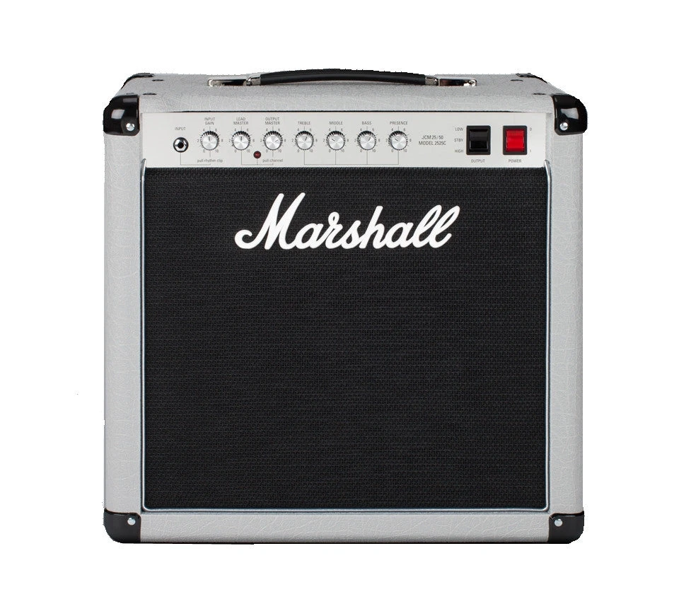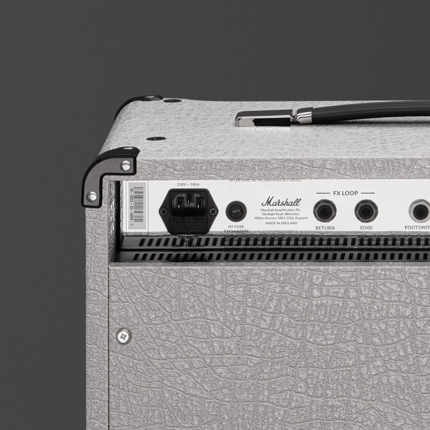 The 2525C combo is loaded with a single 12” Celestion G12M Greenback speaker. In keeping with classic Jubilee tone, Mini Jubilee features preamp circuitry taken from the 2555X, released in 2015, made using the original diagrams and checked against the original 2555 Silver Jubilee head in the Marshall Museum. The amp also features classic silver vinyl and chrome plated panelling to complete the Jubilee look. The 2525 Mini Jubilee is expertly crafted and is designed, engineered and constructed to the highest possible standards at the Marshall factory in Bletchley, England.