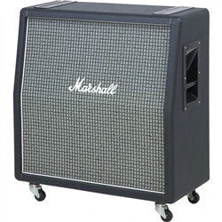 The Marshall 1960X consists of 4 Celestion G12M Greenback 12″ speakers and has a 100W power handling rating. Tonally this speaker cabinet falls between the 1960A’s brightness and the 1960TV’s warmth. Greenback G12M speakers have a very distinctive sound with a fast, snappy response that adds detail and dynamics to both clean and distorted playing. The 1960X Extension Cabinet uses the early ’70s LC checkered grille cloth and a less-textured vinyl covering. If used as a half stack with a 100W head, a power brake is recommended.