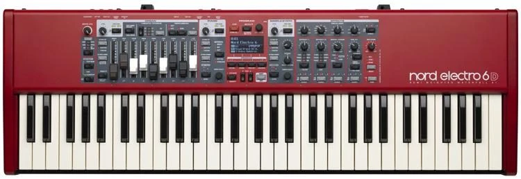The Nord Electro 6 features award-winning Nord C2D Organ simulations of B3 Tonewheel, B3 Bass and Vintage Transistor Organs plus two Pipe Organ models. The extremely authentic B3 Tonewheel simulation features four different tone wheel settings, ranging from factory new clean to leaky old vintage. An improved dedicated Bass mode simulating the Pedal Bass Tonewheels are available for either splitting with a Piano or Synth or with a B3 Upper Manual in Dual Organ Mode. Nord’s impeccable simulations of the classic 1960’s Transistor Organs, Vox Continental and Farfisa Compact with all the classic settings, are also included in the Organ section.