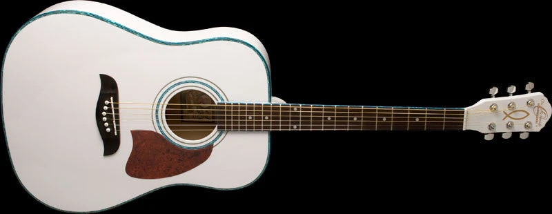 The guitar’s deep dreadnought shape supports superb acoustic resonance and a wide array of tones at your disposal. The body has a select spruce top and catalpa sides and back with a beautiful high-gloss finish, rounding off this white beauty’s body.