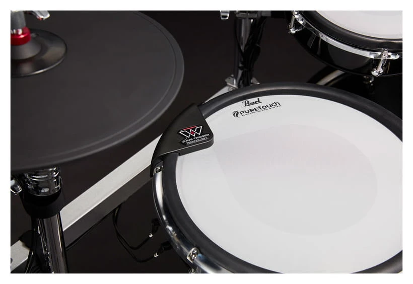 Pearl e/MERGE is the marriage of Korg’s Wave Triggering Technology and Pearl’s PUREtouch Electronic Pads to create an electronic drumming experience that is rivaled by no others. The Combination of these two music technologies is about the response and feel of the pads delivering sounds with dynamic musicality. The sensors in the head respond to the strike and response of the head while the Wave Triggering sensors activate the sound sample. Both information sources are flawlessly blended in the module with almost unmeasurable latency. Every tiny dynamic variance from the player’s technique and area of the head struck is accurately produced from the module. Each drum pad includes tension rods allowing the player to adjust head tightness to achieve a desired feel. The PUREtouch Cymbal Pads are all multi-zoned pads with a very natural cymbal feel. The technology used allows for actuate blending between the zones. When the player chokes the cymbal the sound is not only cut but a sample is activated delivering the inherent harmonics of a traditional cymbal being choked.