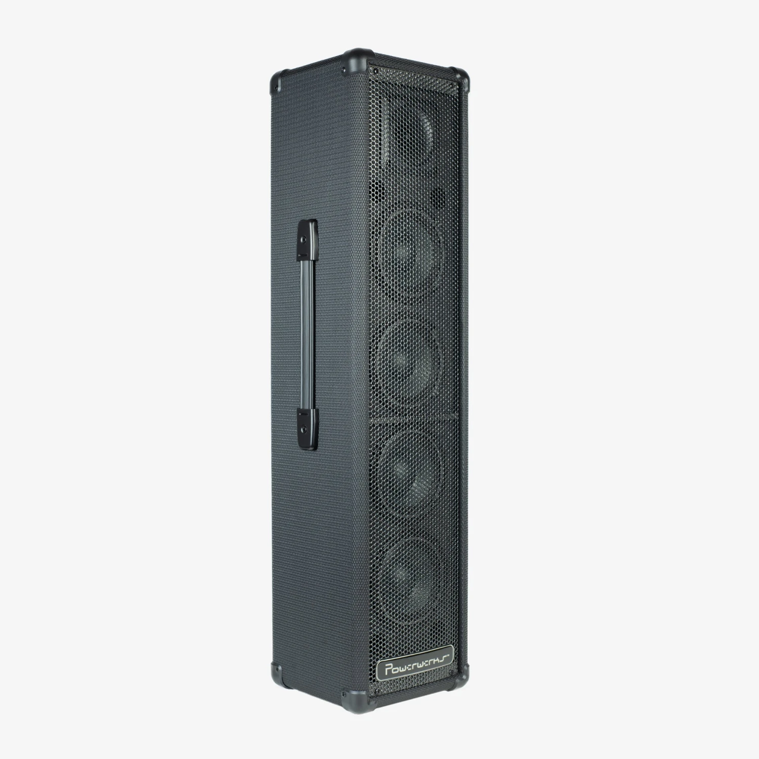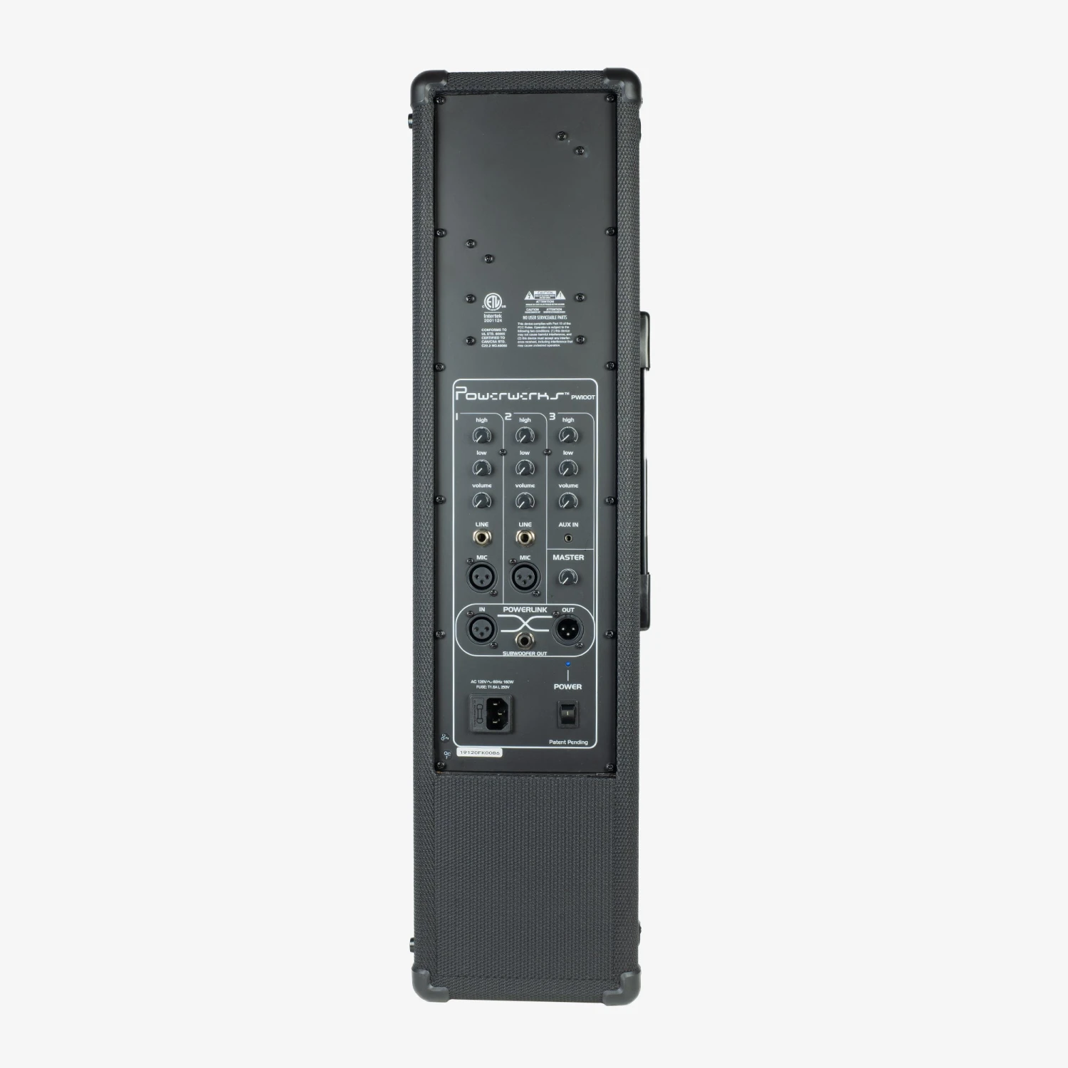 The PW100T P.A. System combines quality performance and convenient features, all in a highly portable package. You’ll find that the PW100T works well in a variety of environments, amplifying vocals, instruments, keyboards, drum machines, audio devices, and more. The four 4.5″ speakers and high-frequency driver provide just the right combination of high and midrange sounds. This balance ensures your vocals cut through the mix while minimizing harsh and unwanted frequencies. The PW100T Construction is based on the same tried-and-true techniques as the rest of our speaker line. This includes a heavy-duty steel grill and rigid corners. This model also utilizes a high-frequency driver for crisp, accurate reproduction of treble frequency and articulate speech. For the soloist or acoustic duo, the PW100T works well when positioned on a standard speaker stand. The POWERLINK Circuit allows two or more units to be linked together and function as one P.A. system. As your following grows, so does your sound system. Multiple units can be connected to increase the sound coverage in your venue of choice.