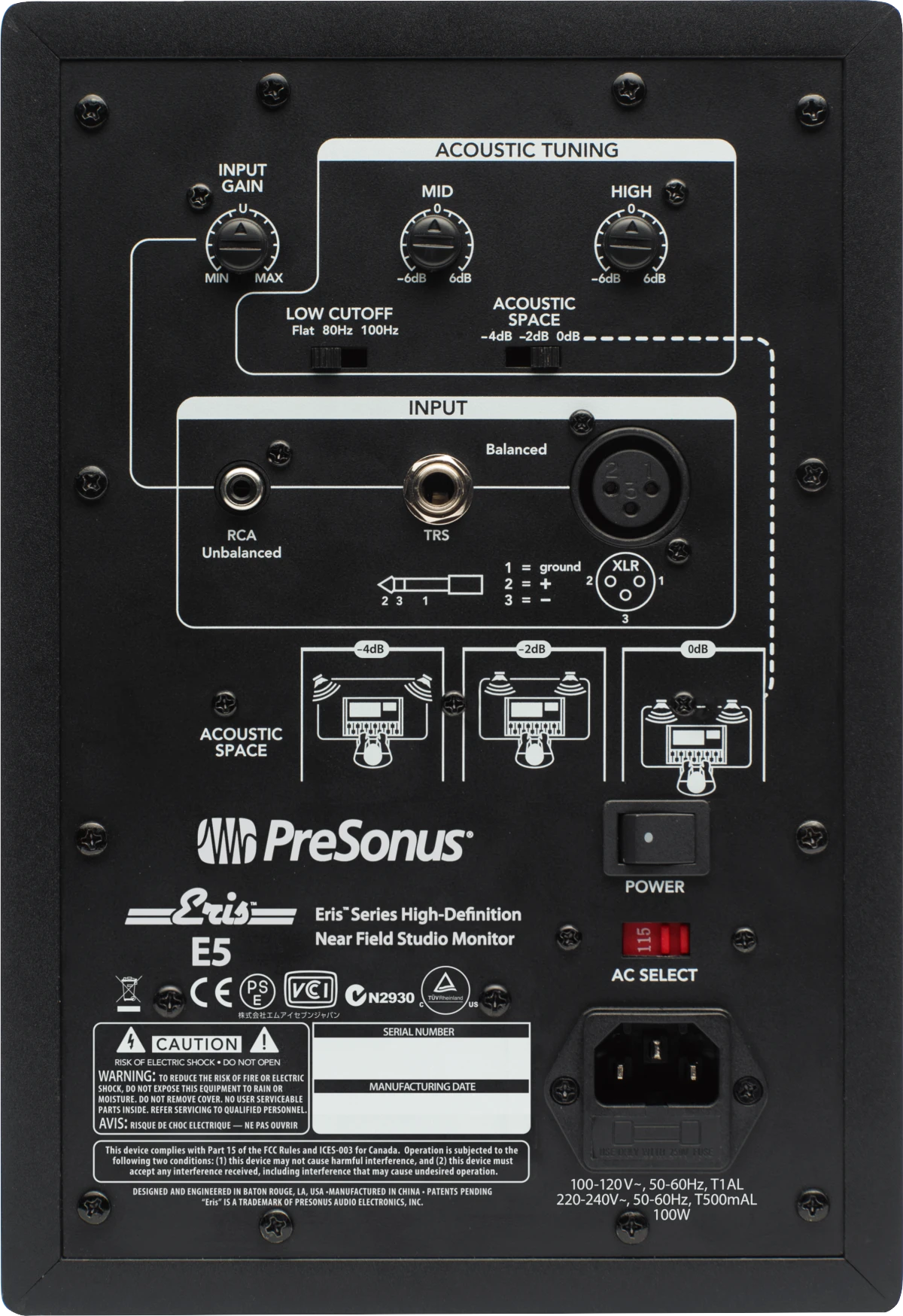 When it’s time to replace those cheap “computer” speakers with serious 2-way professional studio monitors, you’re ready for the Eris® E5. With woven composite low frequency transducers, low-mass silk-dome tweeters, responsive Class AB amplification, and professional acoustic-adjustment controls, the compact Eris E5 represents an outstanding value in its class. It includes RF shielding, current-output limiting, over-temperature protection, and subsonic protection, and unlike comparably priced studio monitors, it has controls for simulating different listening environments and flattening frequency response to enable accurate mixing.