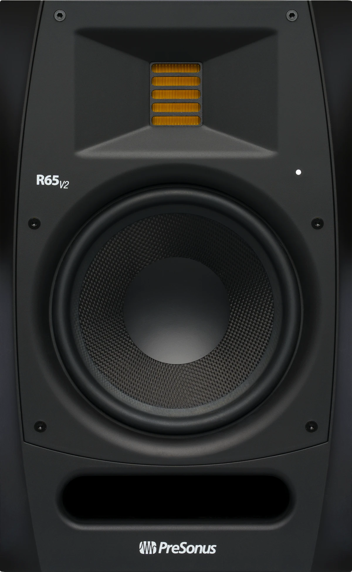 Clarity is king—and with the R65 V2s, you’ll hear every single detail of your music—and no problematic trouble spots will escape your ear again! If you’re mixing or mastering high-resolution audio, the R65 V2 will ensure that you hear every nuance, thanks to its custom 6.8-inch Air Motion Transformer (AMT) tweeter that responds to the subtlest waveforms and the highest frequencies. You’ll hear all of the air and space that has become synonymous with high-resolution audiophile sessions. The AMT design also allows the R65 V2 to handle 8 to 13 times the projection area of more traditional tweeter designs—while its unique housing constrains this projection area strictly to the horizontal axis. The result is a very wide sweet spot with focused vertical dispersion—minimizing reflections from your desk, floor, or ceiling.