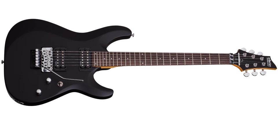 C-6 Deluxe with Floyd Rose Trem Electric Guitar Satin Black. The Schecter C-6 Deluxe with Floyd Rose Trem Electric Guitar packs a lot of features to make it a great value for the price. It sports a comfortable basswood body with a bolt-on maple neck. The rosewood fingerboad has a 14″ radius and 24 narrow, extra-jumbo frets for playing ease. Schecter Diamond Plus pickups provide all the power you’ll need, while a Floyd Rose tremolo and locking nut give you stage-ready looks and performance.