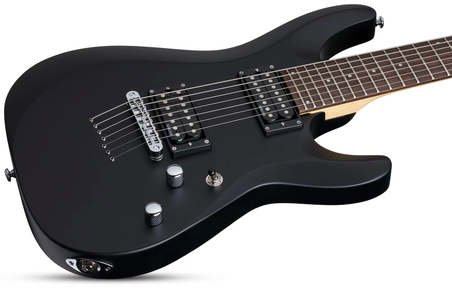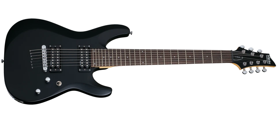 The 7-string Schecter C-7 Deluxe electric guitar is designed and built for rock-hard rock. The bolt-on neck, 26-1/2″ scale, basswood body, and Schecter Diamond Plus pickups leave no doubt as to the C-7 guitar’s metal credentials. A thin C neck profile and extra jumbo frets make the C-7 Deluxe easy to play anywhere on the fretboard.