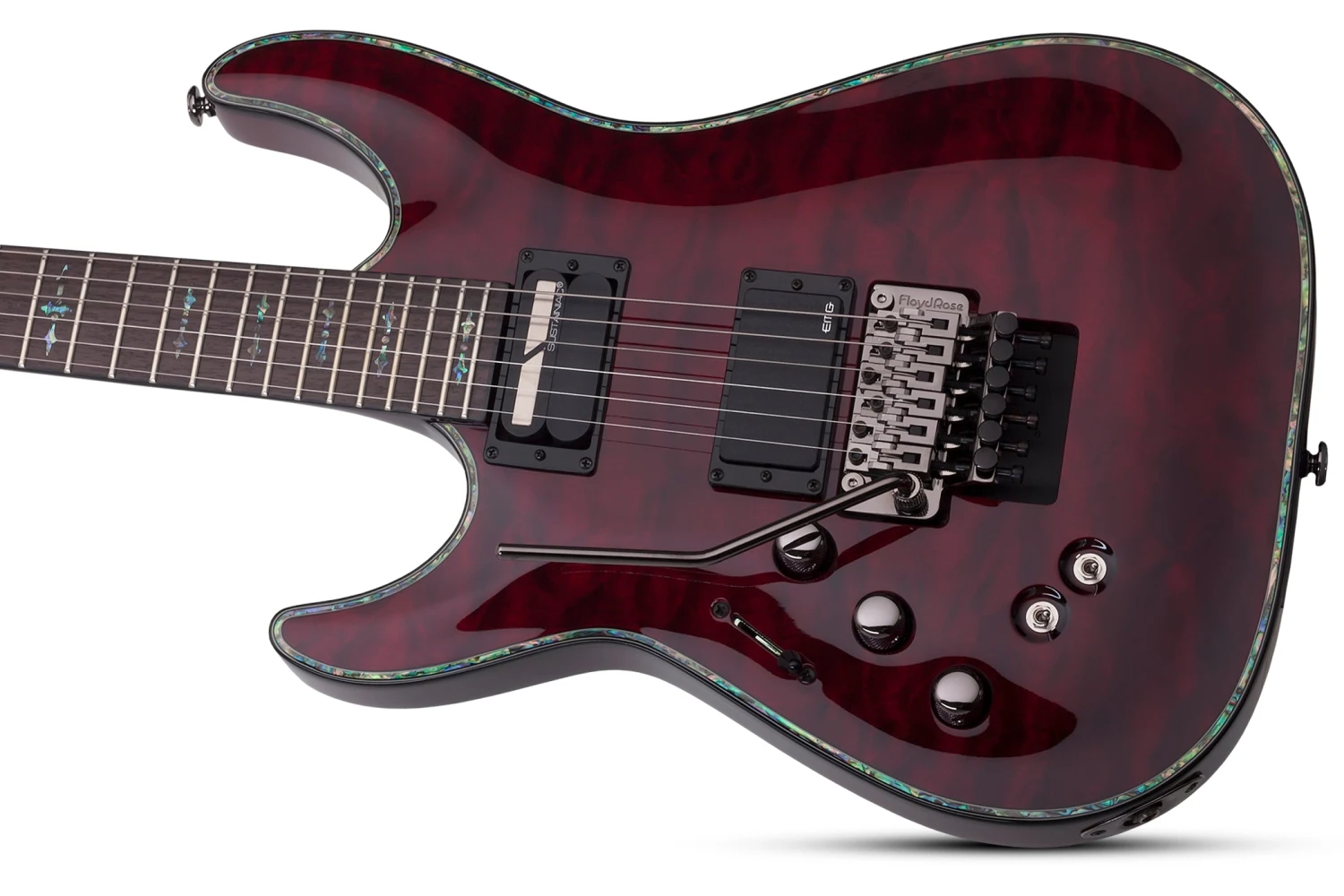 The Schecter Hellraiser C-1 FR S is a no holds barred precision instrument for rock and metal guitarists. Featuring all mahogany construction including a glued ‘Ultra Access’ neck join that allows incredible playability to the very top of the fretboard. The Hellraiser C-1 also features active EMG 89 bridge humbucker for insanely high output tones with bone crushing lows and precise highs and Sustainiac in the neck position for infinite controllable sustain at the push of a button! The 1000 Floyd Rose keeps tuning stable even after serious whammy bar abuse, even after other trems would give up and break! But not just all about the playability and sound, the Hellraiser C-1 FR S is stunning with high gloss finish and Gray Pearl binding for a really premium look! Here’s what Schecter say about the Hellraiser C-1 FR The active EMG 81TW and 89 pickups can be split via the push / pull pot and thus also provide the original single coil sound. The 3-piece mahogany neck is glued into the arched mahogany body and offers Schecters known “Ultra Access” easy access to the upper frets. Additional features: Original Floyd Rose, Black Chrome Hardware, Graph Tech Tusq saddles and Schecter locking tuners.