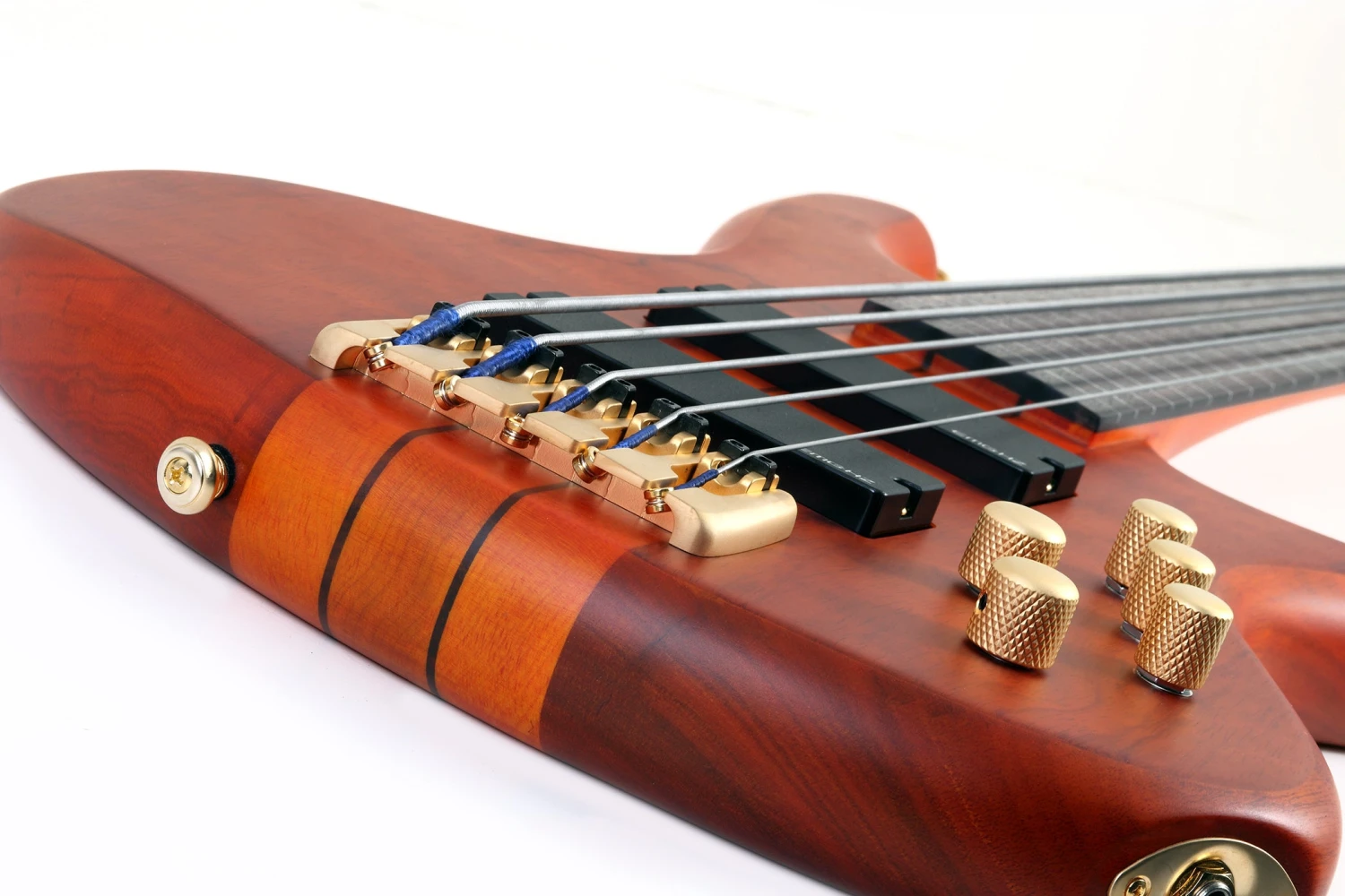 This bass guitar follows the same tenets as every instrument from Schecter, with quality tonewoods, high-end components, and a playability that can’t be beat. Not only will you get stunning build quality and craftsmanship, you’ll also get the ability to fine-tune your sound and get it exactly how you want, thanks to on-body controls and an active pre-amp system. Construction & Build The body of this bass is mahogany with a bubinga top, providing great resonance and tone. The fretless thru-neck is a maple/walnut multi-ply construction. This adds stiffness and consistency to the playing feel while eliminating potential dead spots on the fretboard. Schecter went the extra mile to make sure this bass was more than just the sum of its parts, and they hit the mark with an instrument that sounds, looks, and feels worthy of the most demanding musicians. Components & Hardware An 18-volt internal pre-amp system works in concert with the lauded EMG 40Hz pickups to channel every bit of rich sound the guitar puts out. With powerful pickups, you also need powerful modulation, and Schecter gives you the on-body controls you need–volume, blend, and even an EMG 3-band EQ–to dial in on the ideal sound for whatever you’re playing. Other noteworthy hardware includes Schecter’s own precision tuners, a Diamond Custom bridge, and a two-way adjustable truss rod.