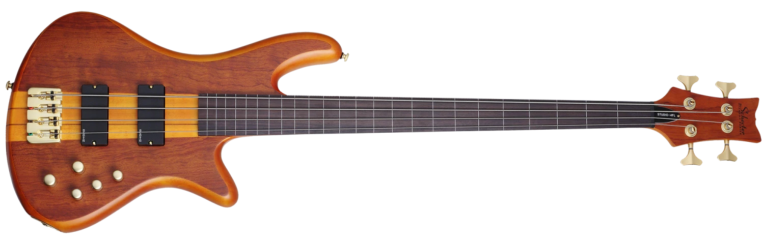 Schecter Stiletto Studio-4 fretless electric bass, honey satin finish.