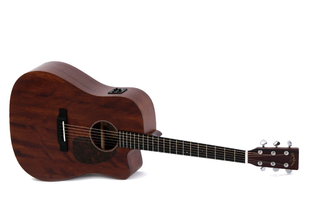 The Sigma DMC-15E+ Electro Acoustic, Natural offers an all-mahogany construction combined with a dreadnought cutaway body and on-board Fishman electronics, perfect for the performing musician. Its solid mahogany top offers a natural compression, creating strong fundamentals with a clear and direct focus; whilst its mahogany body emphasizes in the mid-range and delivers a punchy, woody, resonant tonal character with plenty of warmth. Its real bone nut also offers added resonance and sustain to the guitar’s overall sound. Furthermore, the Sigma DMC-15E+ has a D-14 fret cutaway body, which delivers superb volume and projection, as well as a rich, full-bodied sound that is able to accommodate numerous genres and techniques with equal ease including, rock, pop, country, blues, and more alternative playing styles. The DMC-15E+ also comes equipped with a Fishman Isys+ preamp system, offering basic sound tweaking for live and rehearsal settings.