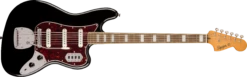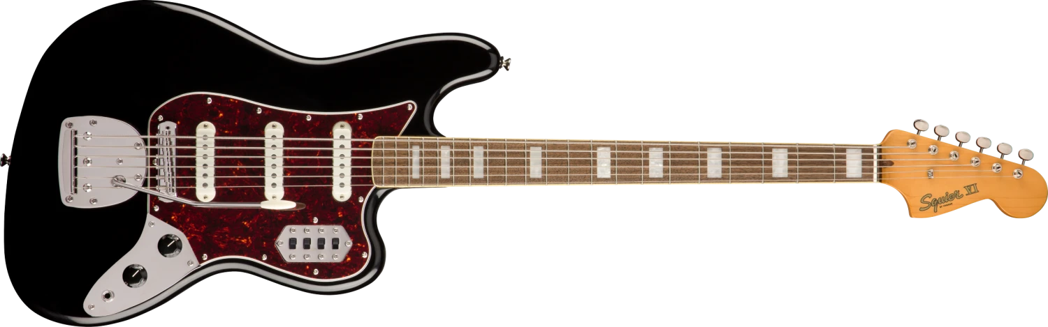 The Classic Vibe Bass VI is a faithful tribute to the secret weapon of producers and adventurous players that have dared to explore it since its original production from 1961 to 1975. Tuned an octave lower than a guitar and featuring a vintage-style tremolo, the Bass VI is the perfect companion to accompany any guitar or bass player into uncharted territory. Player-friendly features include a slim, comfortable “C”-shaped neck profile with an easy-playing 9.5”-radius fingerboard and narrow-tall frets, as well as a floating bridge with barrel saddles for solid string stability. This throwback Squier model also features 1960s-inspired headstock markings, rich-looking nickel-plated hardware and a slick vintage-tint gloss neck finish for an old-school vibe.
