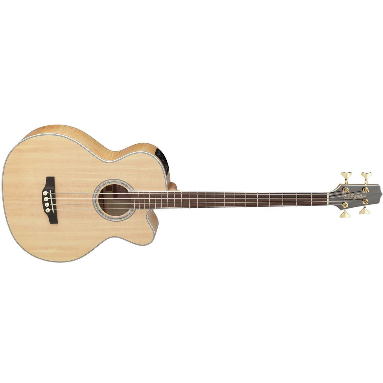Featuring a solid spruce top and flame maple back and sides, the GB72CE produces all the volume and robust sound that players expect from a jumbo bass guitar. The slim mahogany neck and 16”-radius bound rosewood fingerboard provide great feel and playability, while the onboard Takamine TK-40B preamp system gives you a built-in tuner, three-band EQ and gain controls, mid-shift control, bass-boost switch and EQ bypass switch for the ultimate in versatility and sound quality.